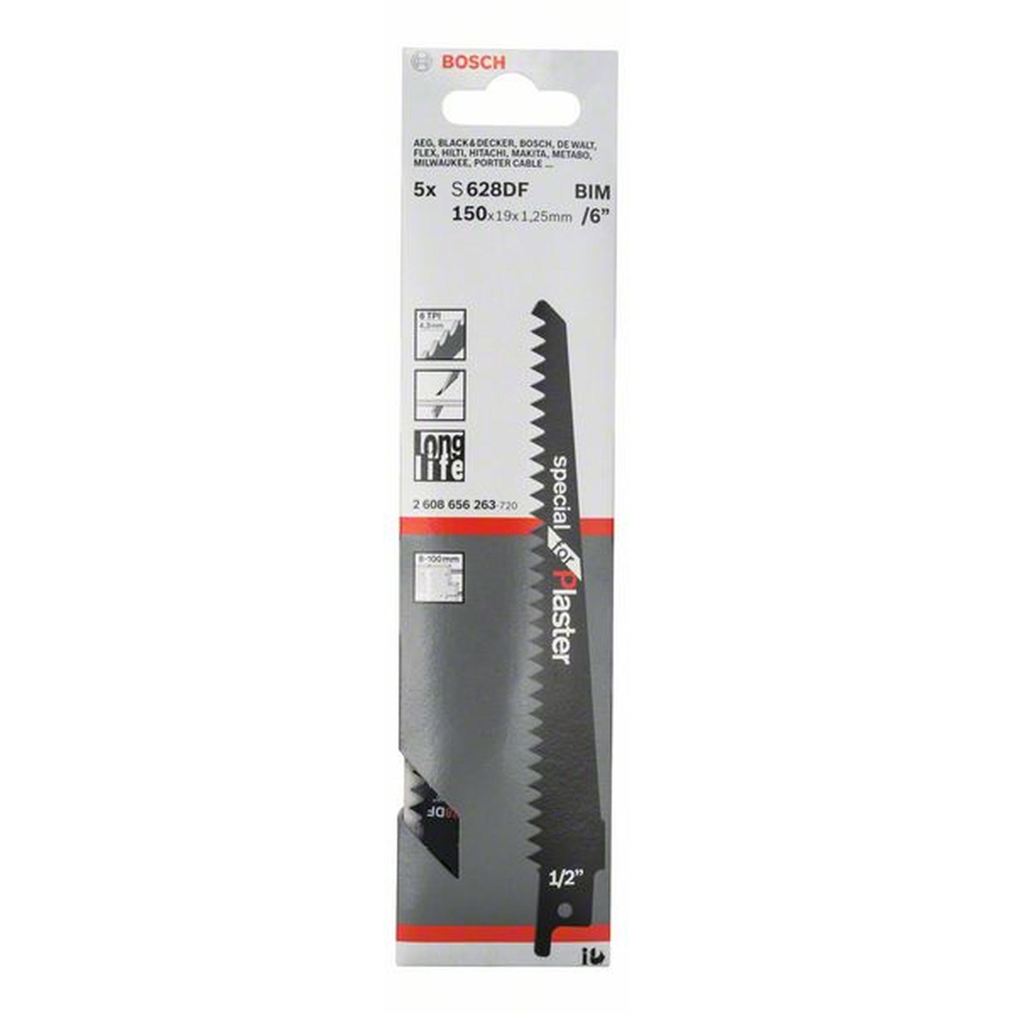 Eigenschaften: Die 25x BOSCH Säbelsägeblätter S 628 DF sind speziell für den Einsatz in Sonderwerkstoffen wie Gips entwickelt worden. Mit geschliffenen Zähnen liefern sie ausrissfreie Ergebnisse und ermöglichen saubere Kurvenschnitte