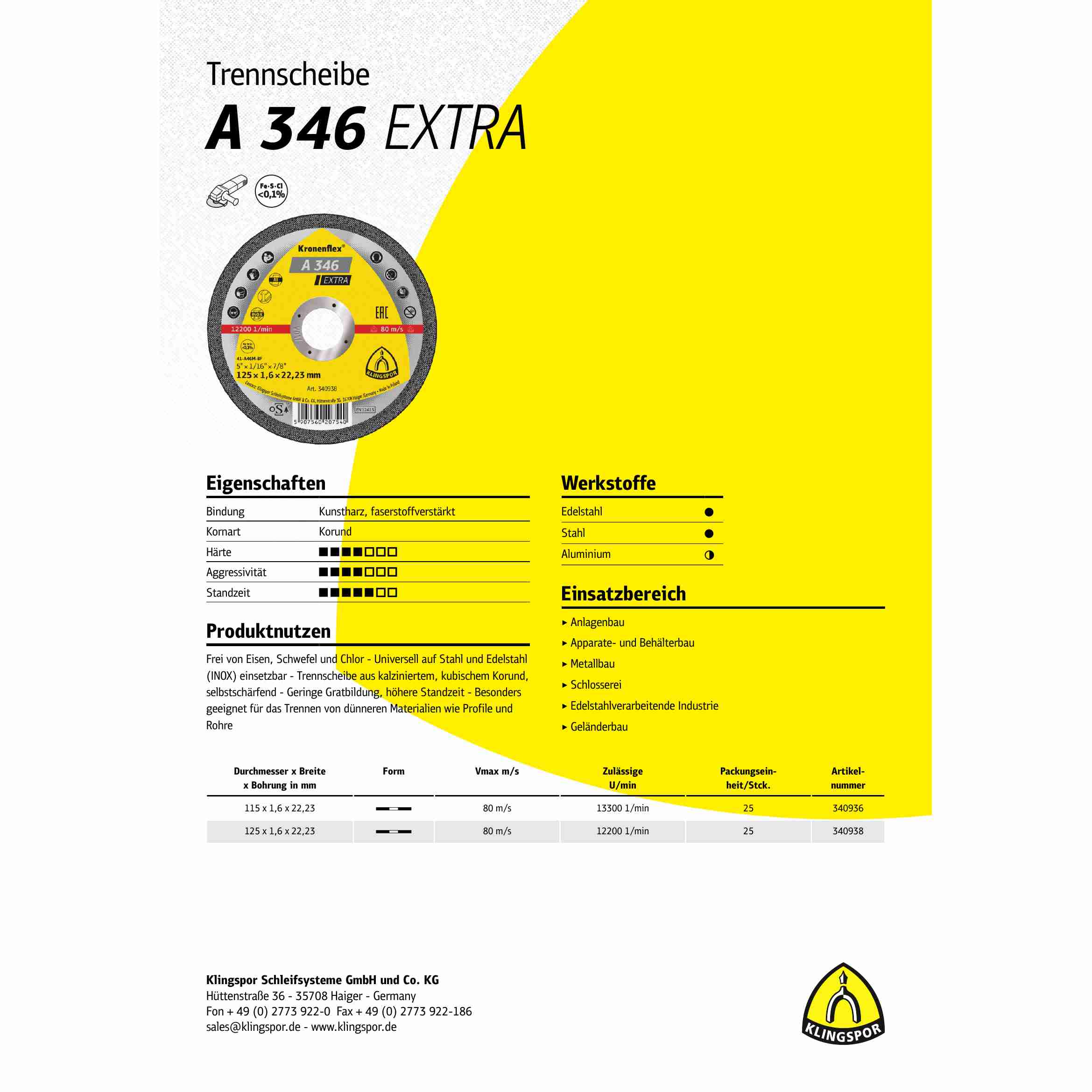 25 x Klingspor A 346 EX Trennscheiben, 115 x 1,6 x 22,23 mm gerade