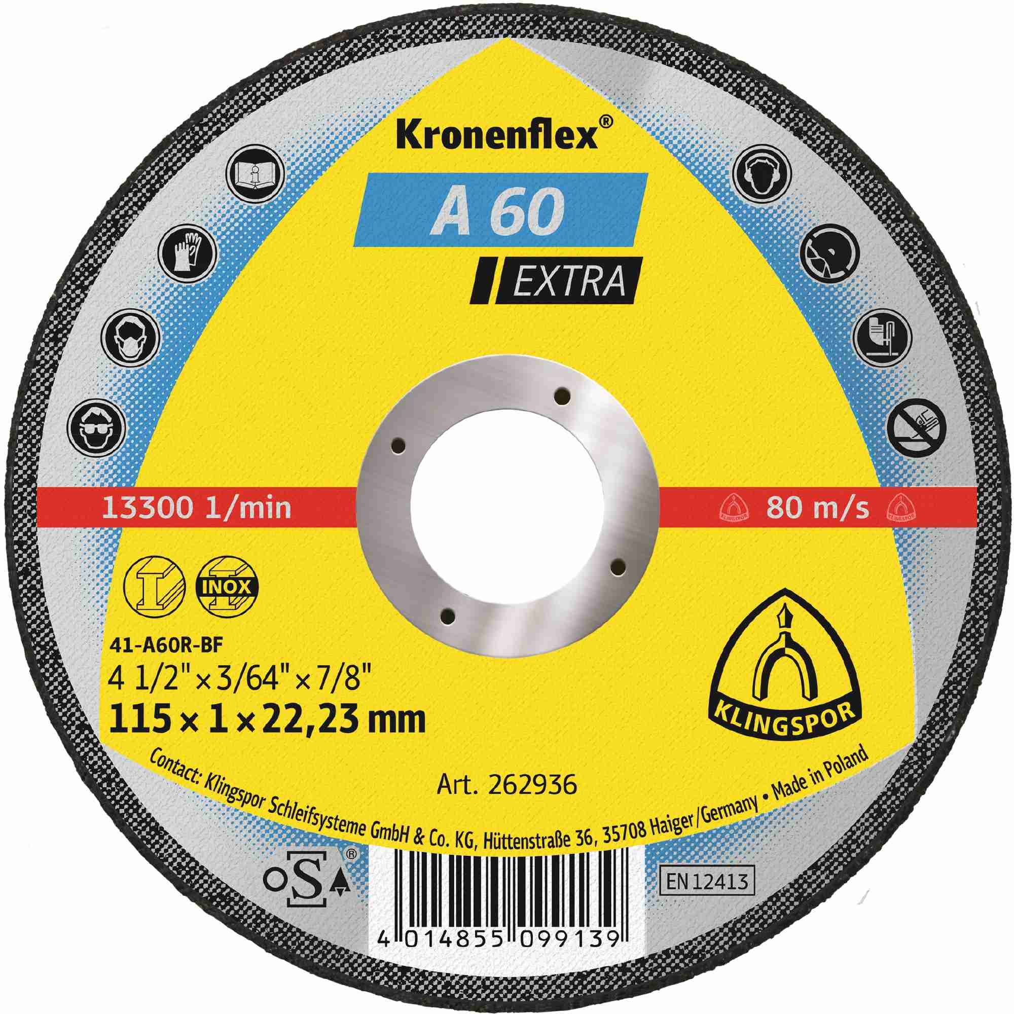 Die Klingspor A 60 EX Trennscheiben sind einfach zu handhaben und bieten eine hohe Schnittleistung. Sie sind mit einem Durchmesser von 115 mm und einer Bohrung von 22,23 mm erhältlich. Dadurch passen sie auf die meisten handelsüblichen Winkelschleifer.
