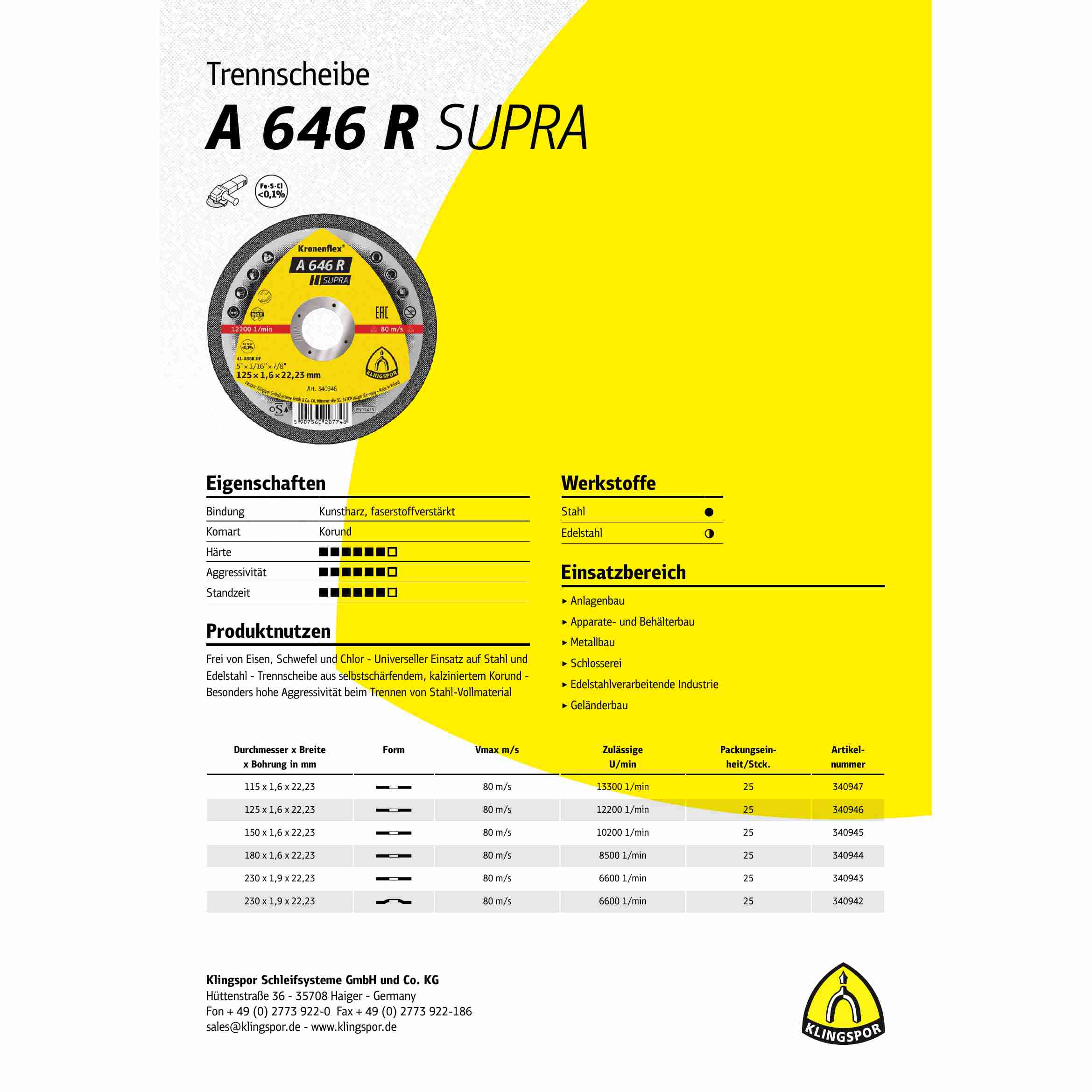 25 x Klingspor A 646 R Trennscheiben, 125 x 1,6 x 22,23 mm gerade