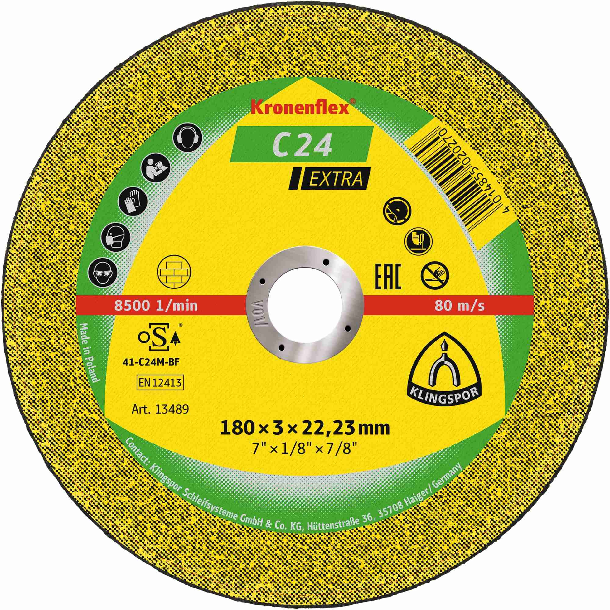 Merkmale: Hochwertige Klingspor C 24 EX Trennscheiben in der Größe 180x3x22,23mm bieten eine preisgünstige Lösung für die Bearbeitung mineralischer Werkstoffe