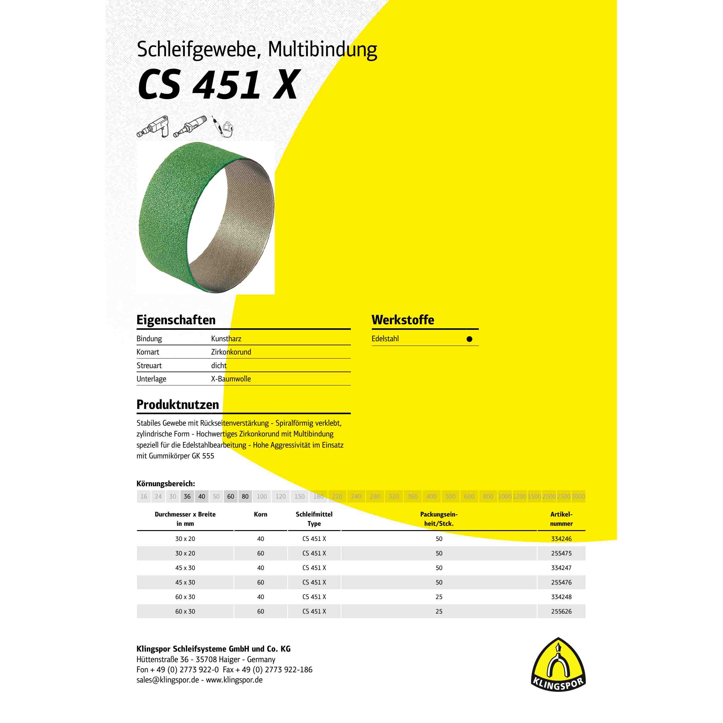 Besonderheiten: Die Klingspor CS 451x Schleifhülsen Multibindung sind hochwertige Schleifmittel mit einer stabilen Unterlage für hohe Beanspruchung