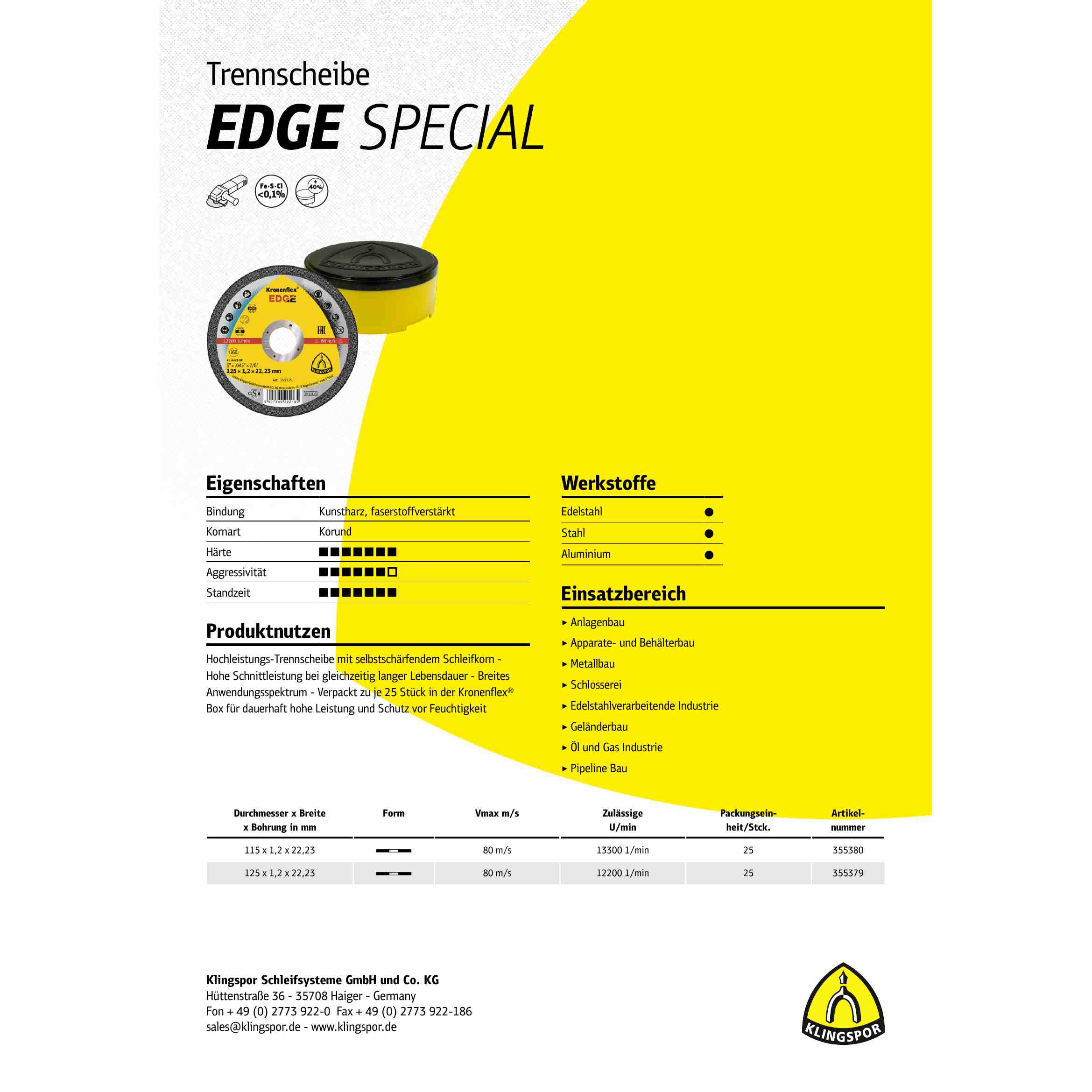 25 x Klingspor EDGE Trennscheiben, 125 x 1,2 x 22,23 mm gerade