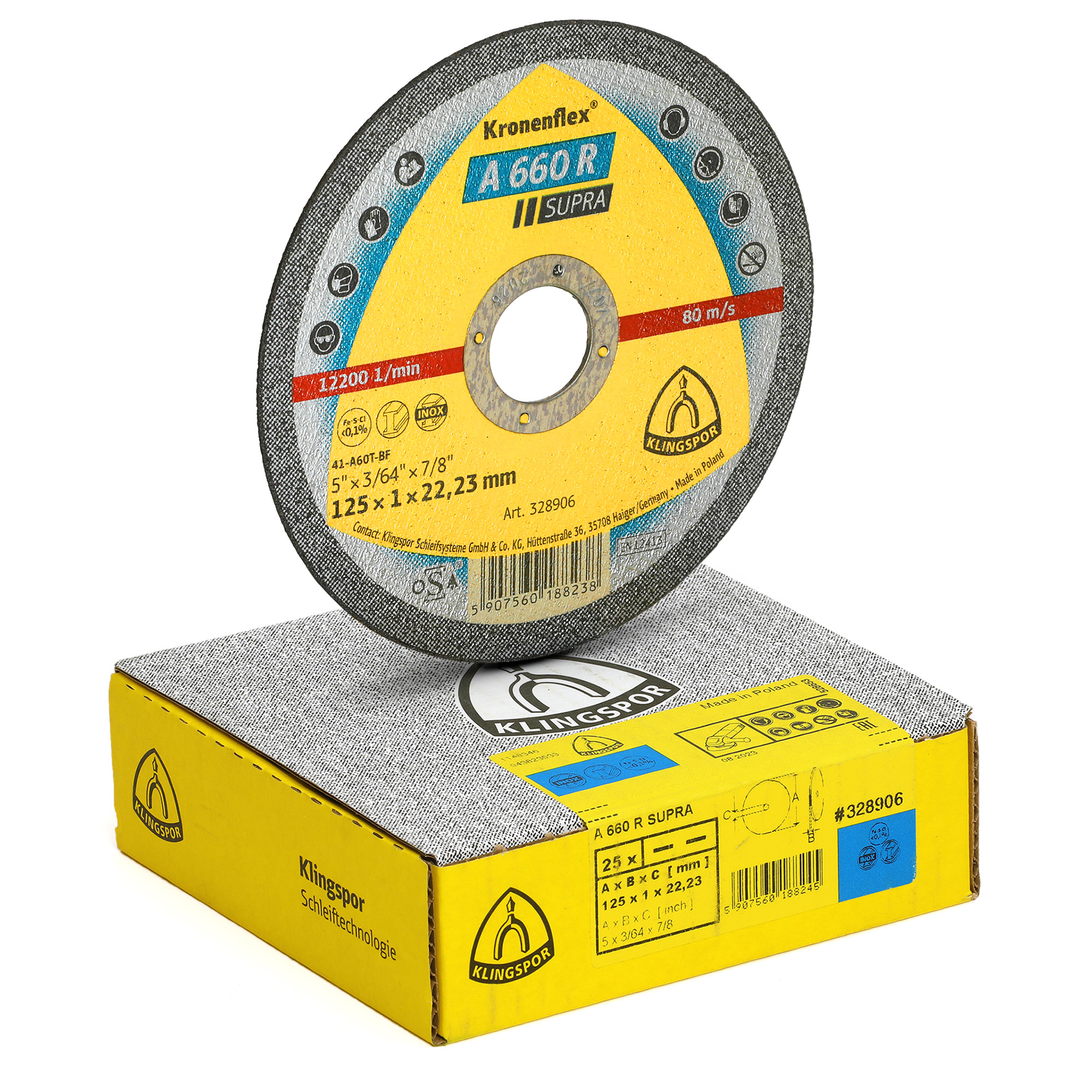 Klingspor setzt auf hochwertige, synthetisch hergestellte Schleifkörner, die eine gleichbleibende Qualität und ein vorhersehbares Verschleißverhalten sichern. Für optimale Ergebnisse wird die Arbeitshöchstgeschwindigkeit empfohlen. Ein angemessener Anpressdruck verkürzt die Schnittzeit und erhöht die Sicherheit des Anwenders.
