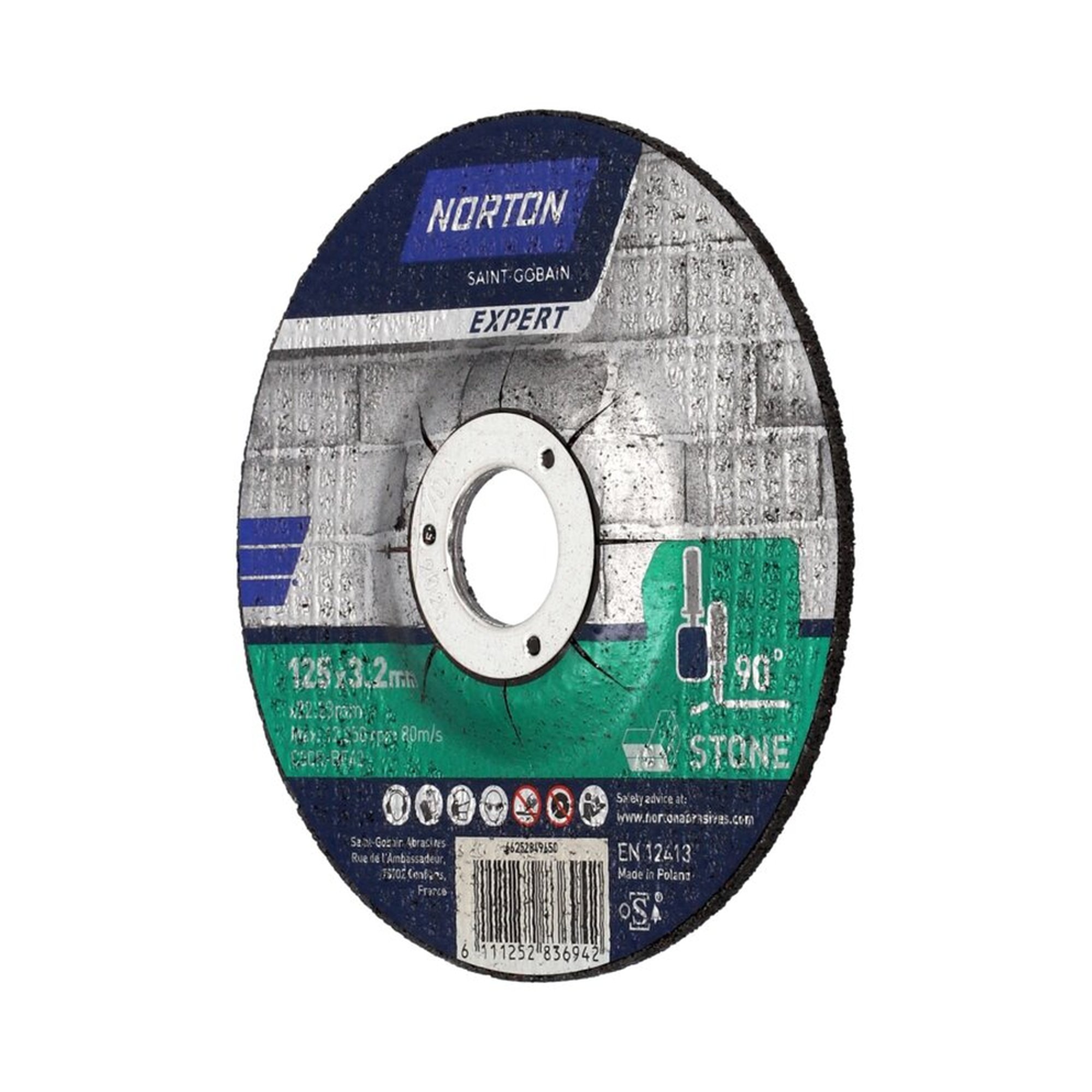 Die Norton EXPERT Trennscheibe 125x3.2x22.23mm ist speziell für die Bearbeitung von Stein konzipiert und gehört zur Produktreihe der leistungsstarken Trenn- und Schleifwerkzeuge. Mit ihrer gekröpften Form bietet sie eine hervorragende Performance in diversen Anwendungsbereichen. Sie ist kompatibel mit Winkelschleifern und kann auch für spezielle Sägearbeiten mit Benzin- und Kappsägen eingesetzt werden.