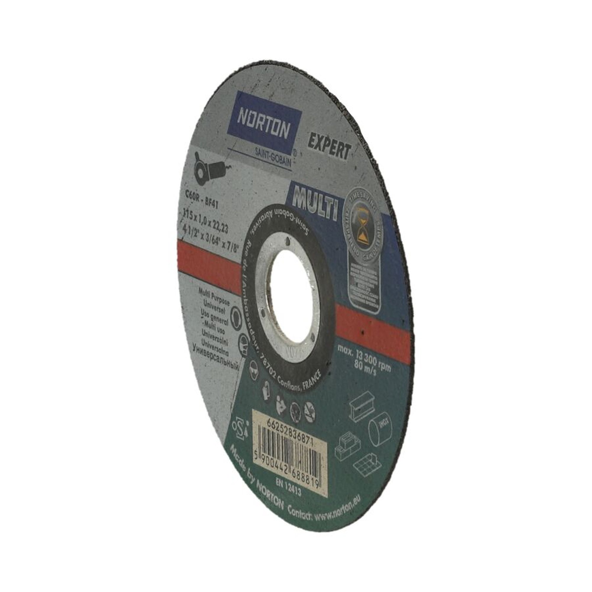 Die Norton EXPERT 41 Trennscheibe zeichnet sich durch ihre universelle Einsetzbarkeit und hohe Leistungsfähigkeit aus. Mit den Abmessungen von 115x1x22.23mm ist diese ultradünne Mehrzweckscheibe ideal für den Einsatz in Winkelschleifern. Sie eignet sich hervorragend zum Trennen einer Vielzahl von Materialien einschließlich Stahl, Edelstahl (Inox), Stein, Aluminium, Keramik und Fliesen.