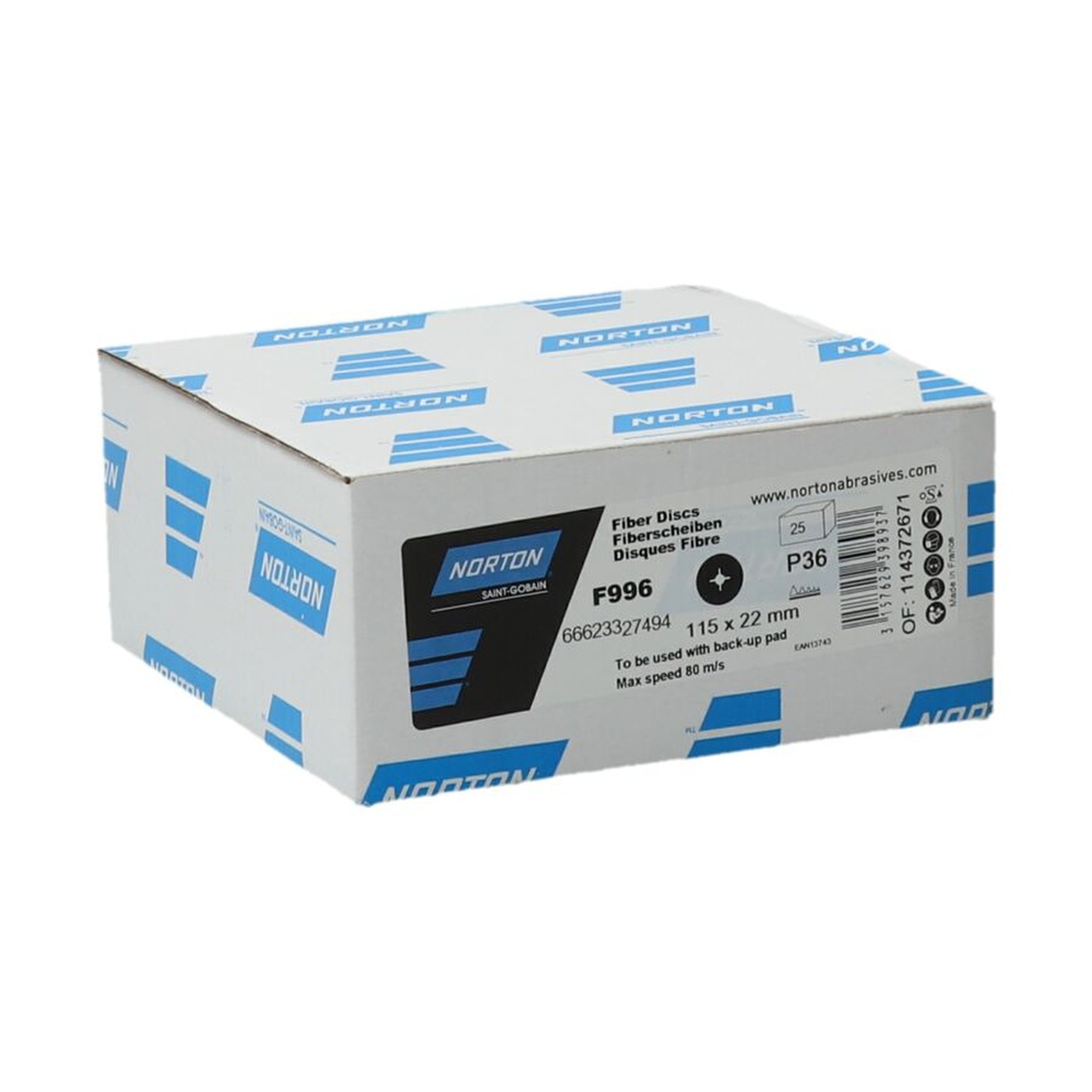 25 x Norton Fiberscheibe 115x22 mm F996 Korn 36 Quantum für effizientes Schleifen