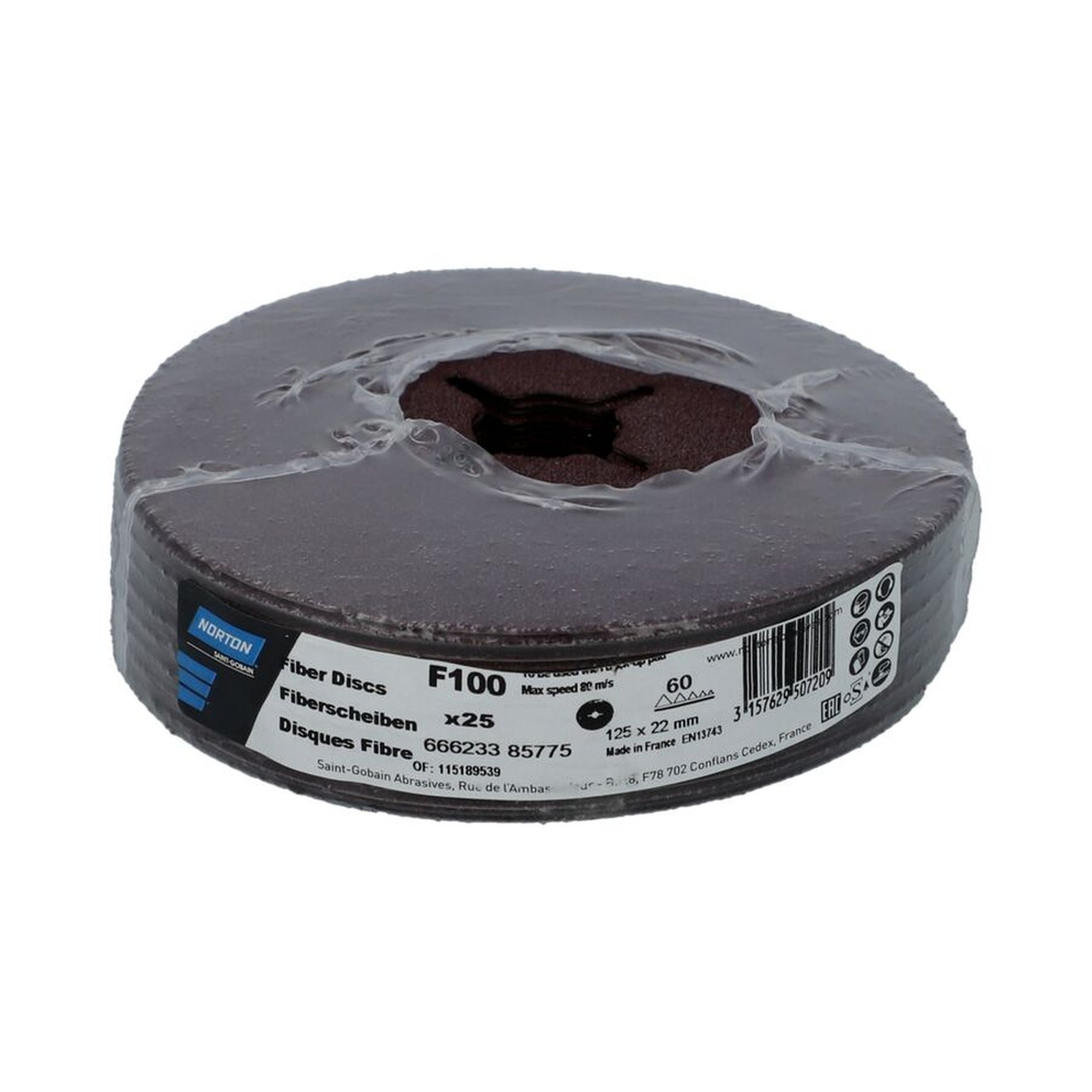 25 x Norton Fiberscheibe 125x22 mm F100 Korn 60 für effizientes Schleifen