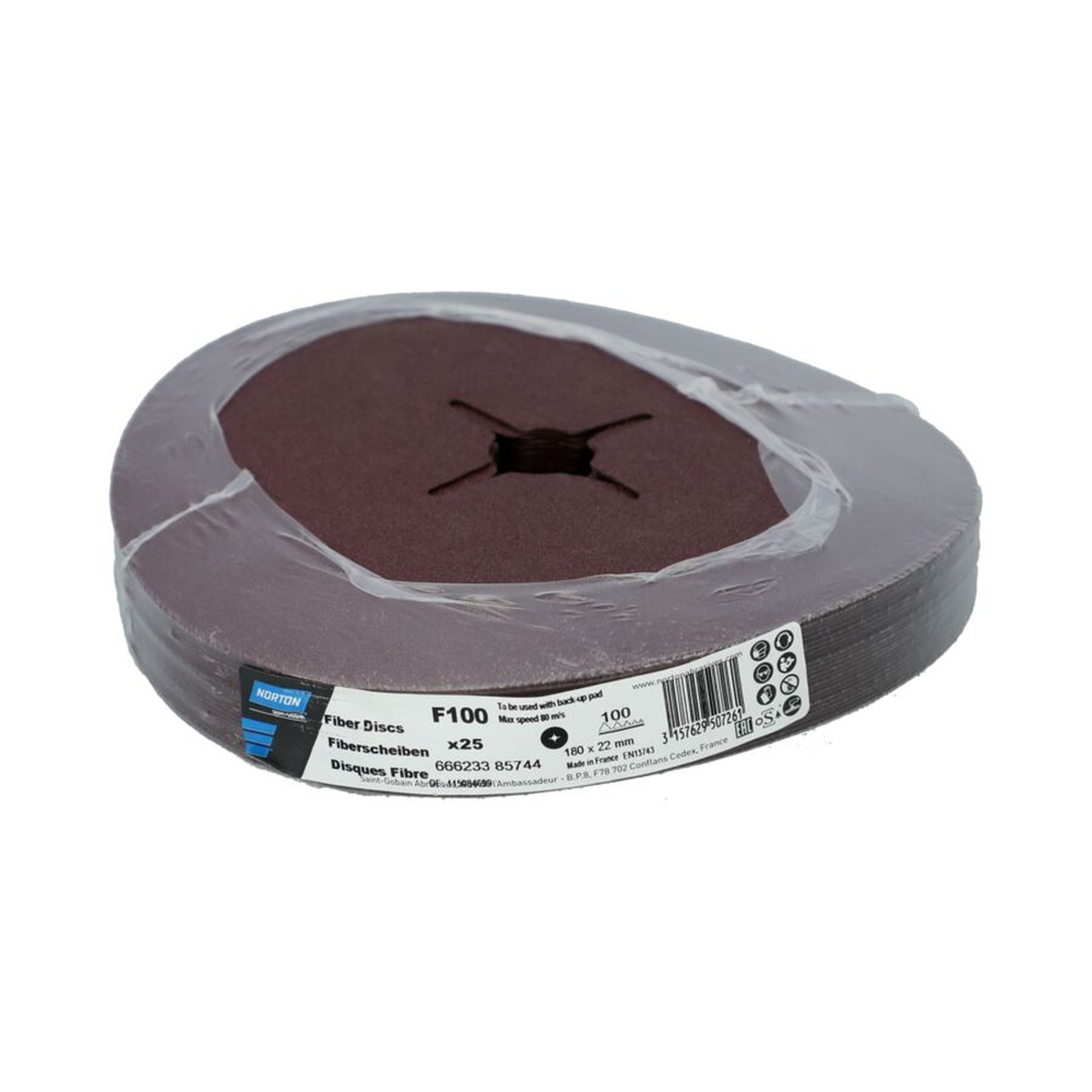 25 x Norton Fiberscheibe | 180x22 mm | F100 | Korn 100 | Hochwertige Schleifscheiben
