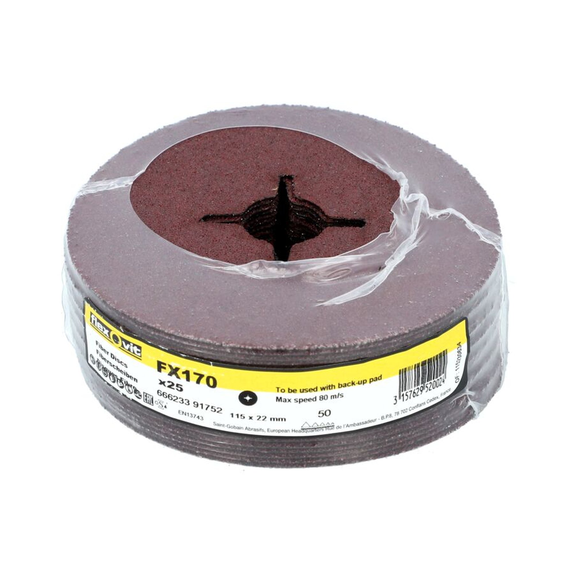 25 x Norton Fiberscheiben 115x22mm K50 Flexovit FX170 – Hochwertige Schleifscheiben