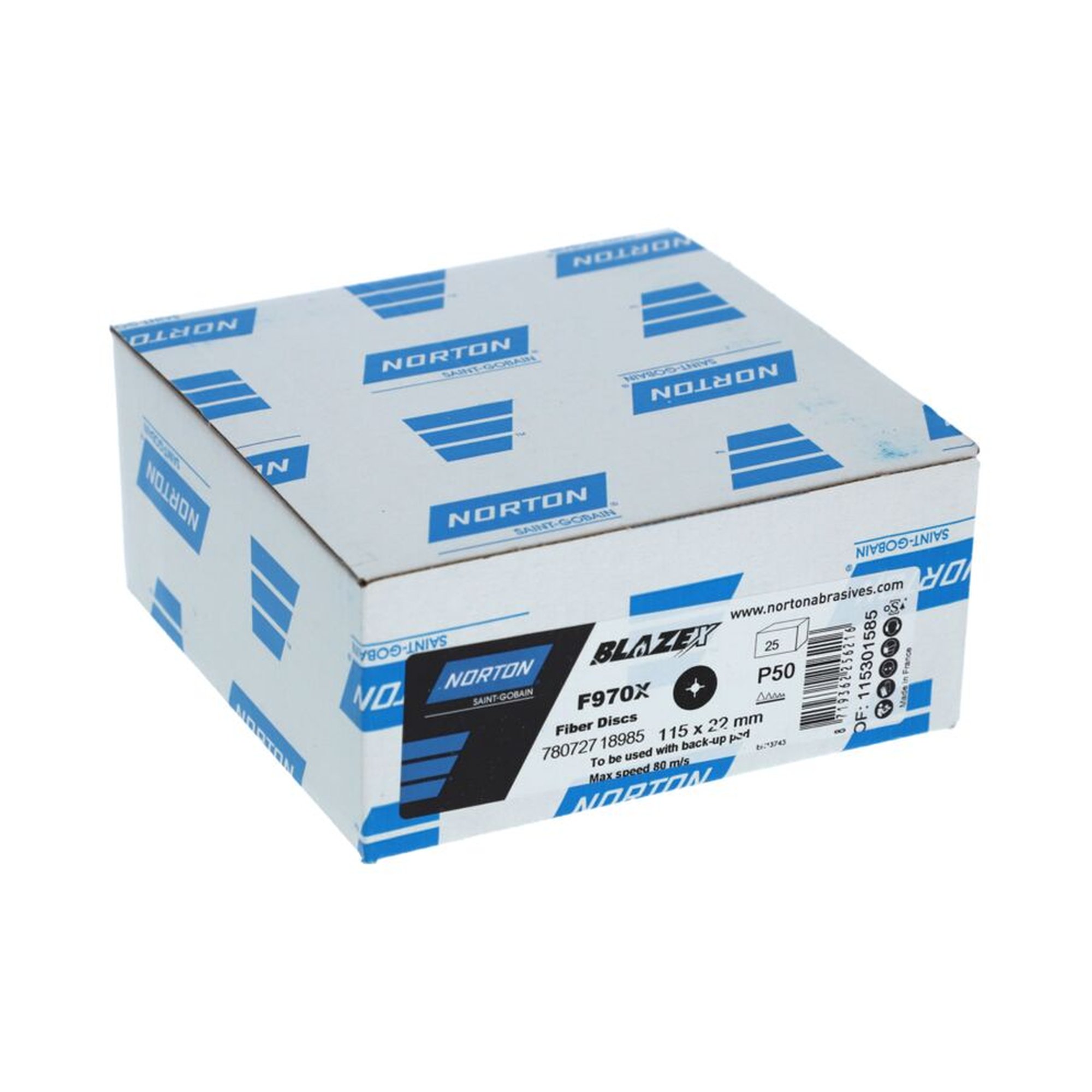 25 x Norton Fiberscheiben Fiberunterlage 115x22mm K50 BLAZE X | Hochwertige Schleifscheiben