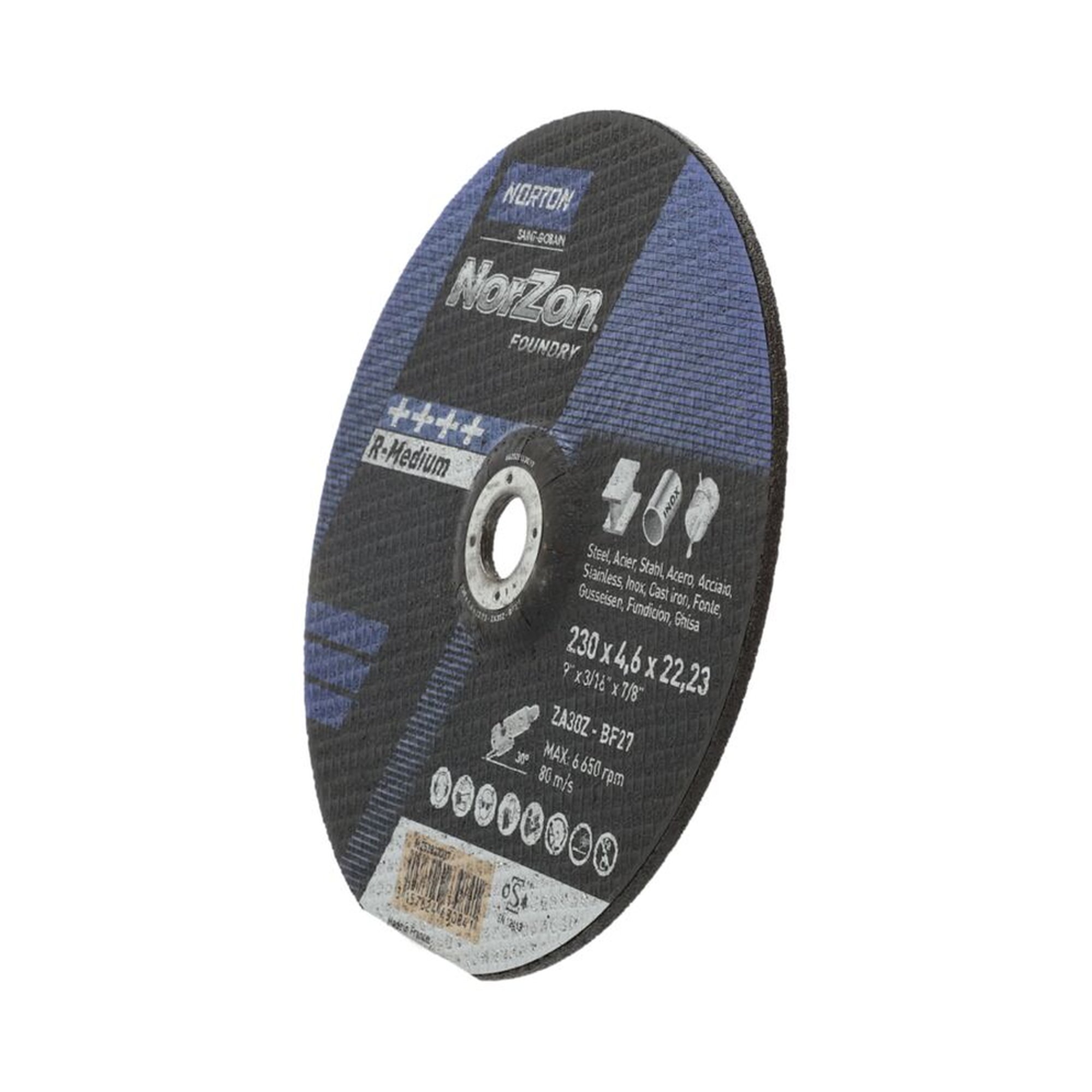 Die Norton NORZON III FOUNDRY Schruppscheibe zeichnet sich durch ihre Dimensionen von 230x4.6x22.23mm und ihre spezielle Formgebung mit einem gekröpften Design aus. Diese Schruppscheibe ist speziell für die Verwendung auf Gusseisen konzipiert und bietet dank des Einsatzes von Zirkoniumdioxid-Korn und einem fortschrittlichen Bindungssystem eine überragende Leistung gegenüber herkömmlichen Aluminiumoxid-Scheiben.