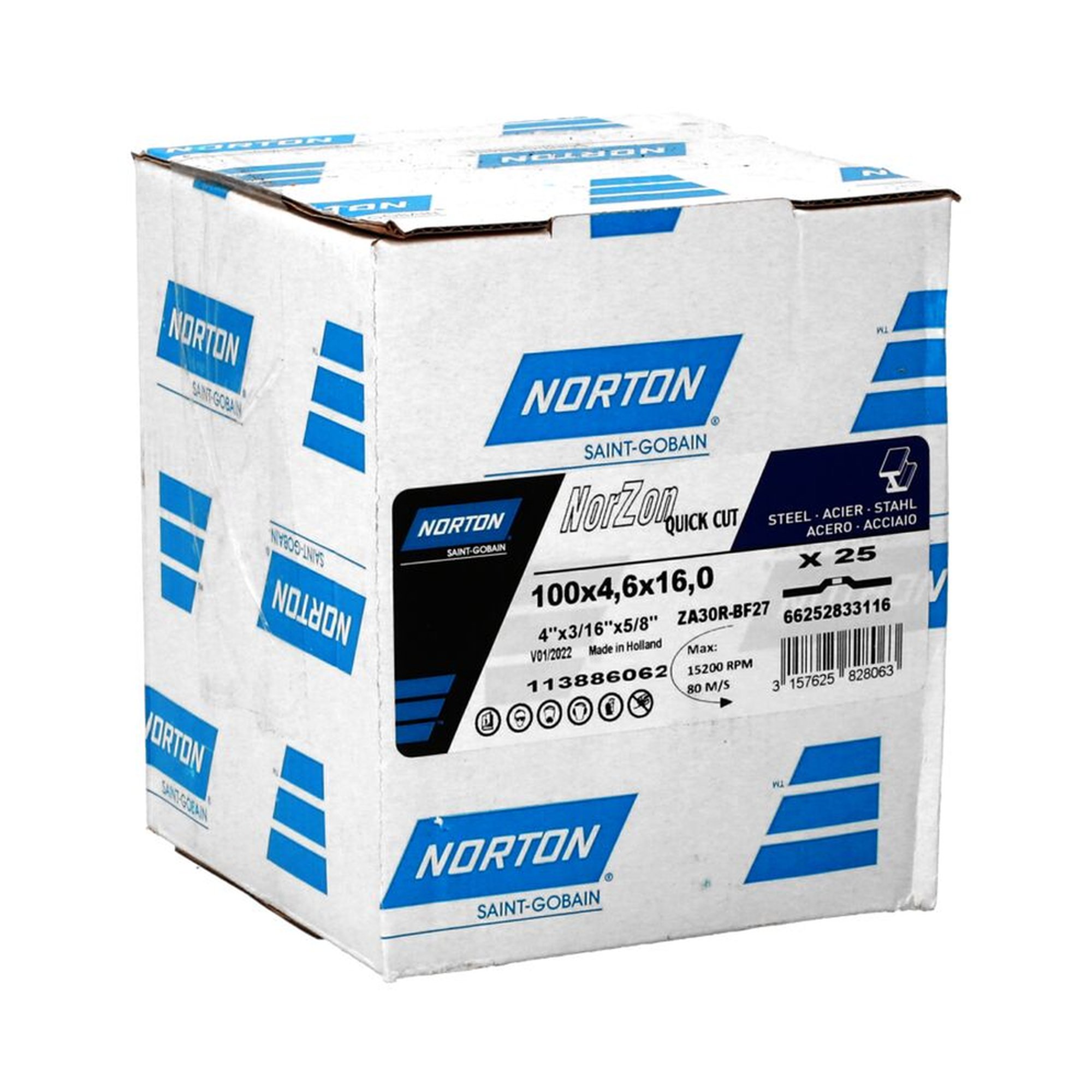 25 x Norton NORZON QUICK CUT Schruppscheibe für Metall/Inox 100x4.6x16mm