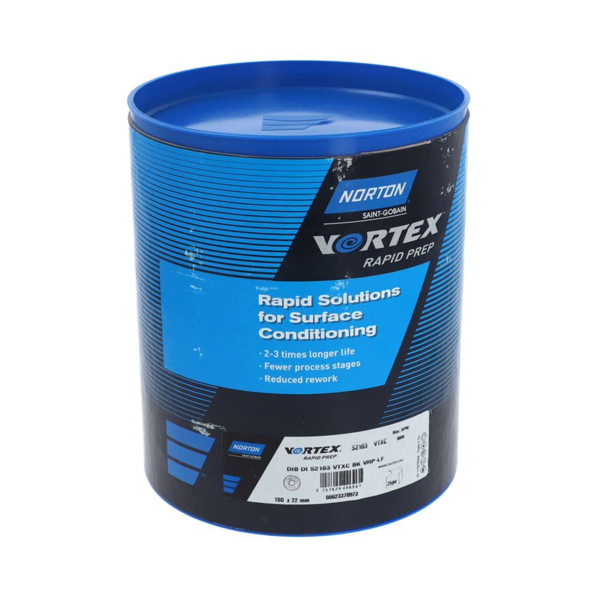 Die Norton VORTEX 180x22mm Scheiben bieten effizientes Beischleifen und Finishen. Ideal für Entgraten und Polieren von Metallen. Strapazierfähig, wirtschaftlich und für diverse Schleifstufen einsetzbar.,