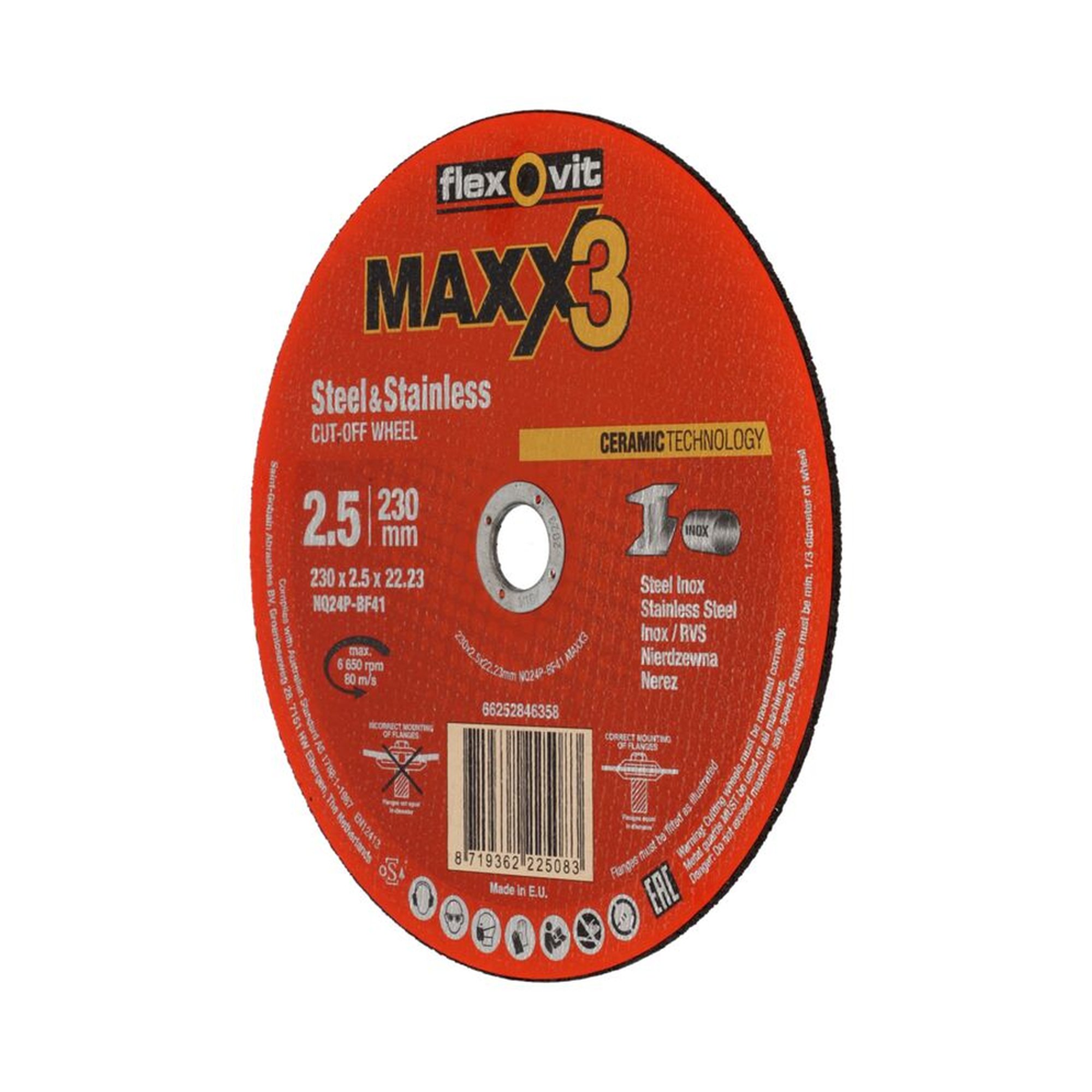 Maximieren Sie Effizienz und Komfort mit der Flexovit MAXX 3 Trennscheibe für Inox. Erleben Sie schnelle Schnitte, minimale Vibrationen und eine lange Lebensdauer. Ideal für Stahl und Edelstahl.,