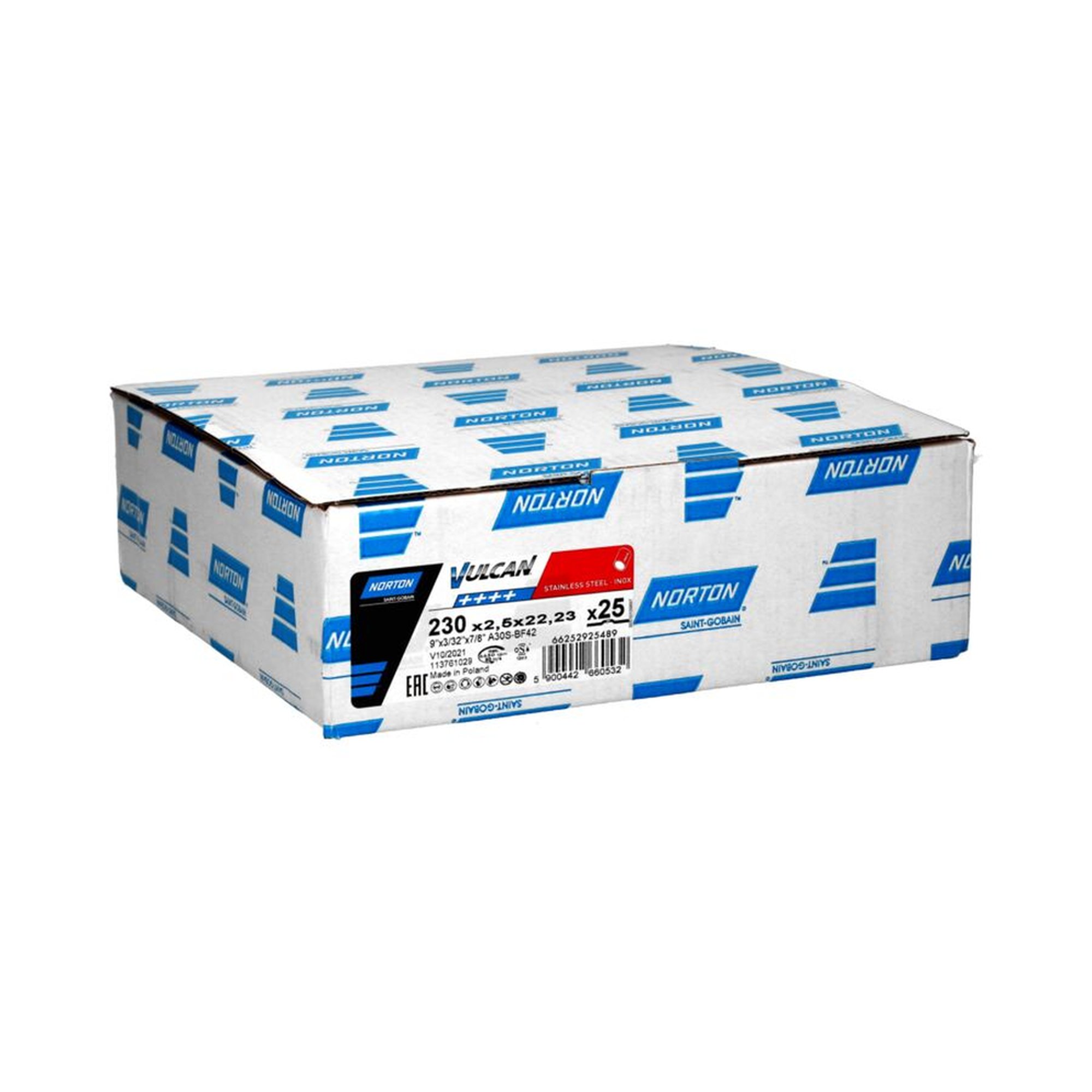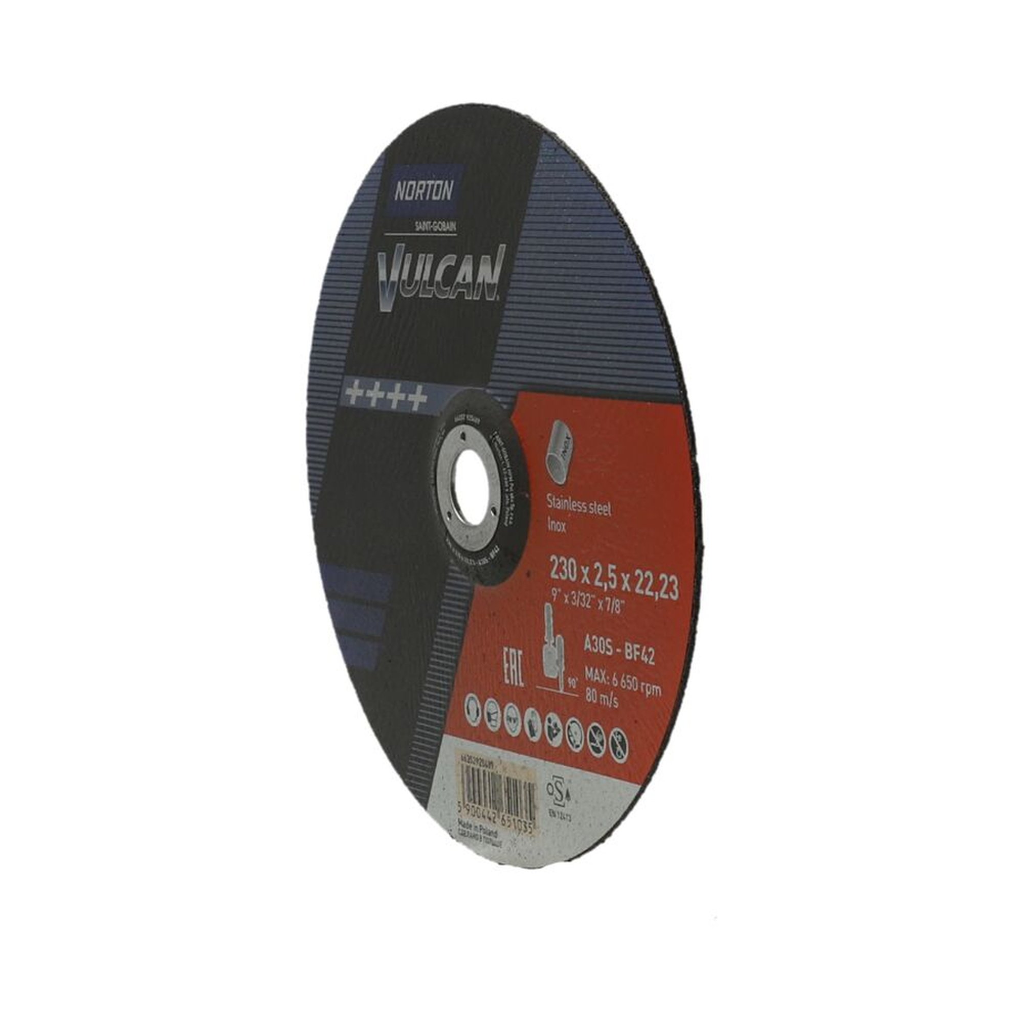 Die 25x NORTON Trennscheibe, gekröpft 42 | 230x2,5x22,23 A 30 S Inox Vulcan Inox ist ein speziell für Inox-Cutoff-Anwendungen entwickeltes Produkt von Norton Vulcan. Diese Trennscheibe besteht aus scharfen Aluminiumkörnern, die eine längere Lebensdauer und höhere Abtragsraten bieten. Dadurch eignet sie sich ideal für eine Vielzahl von industriellen Anwendungen.