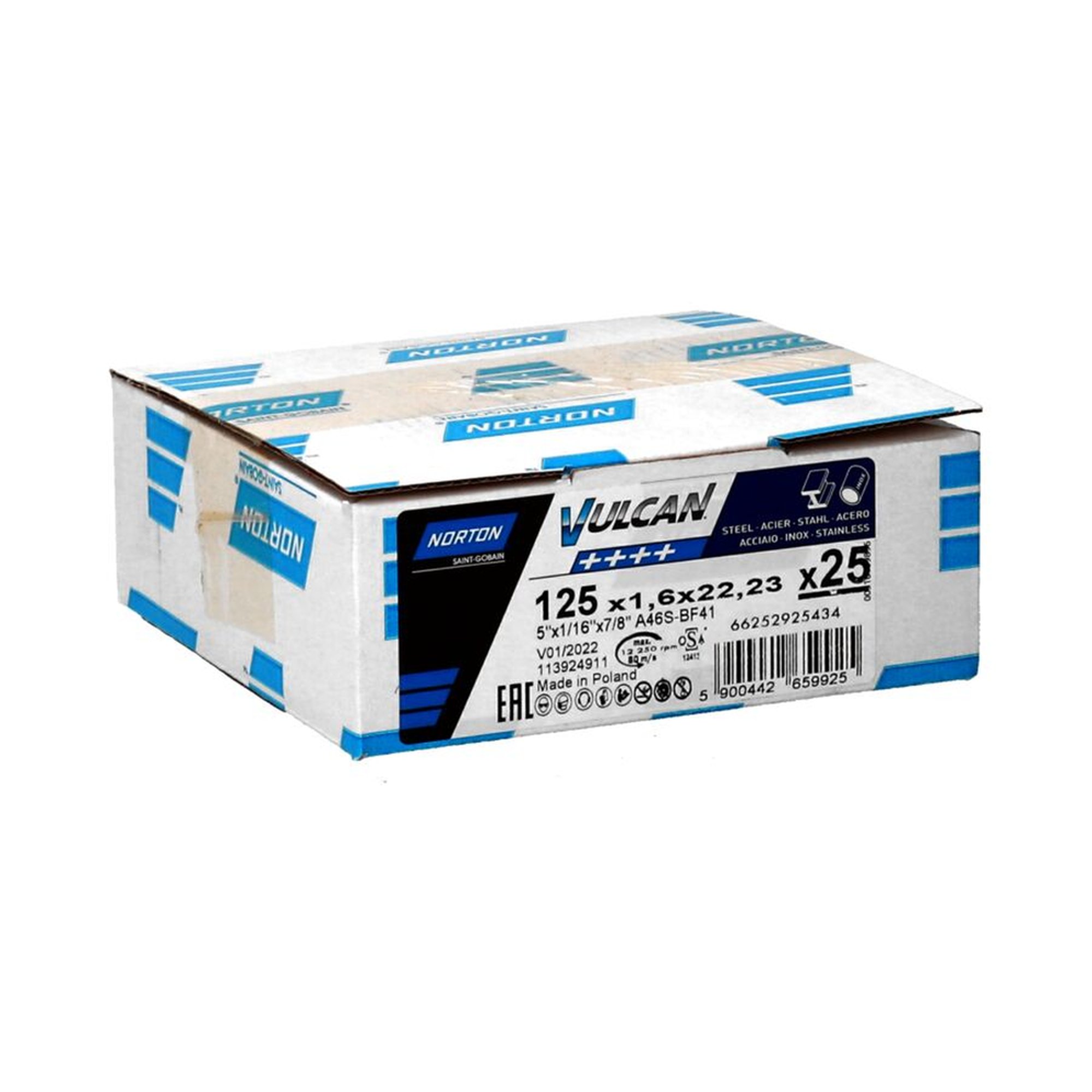 25 x Norton Trennscheibe gerade 41 | 125x1,6x22,23 A 46 S Vulcan | Hochleistungsschnitt