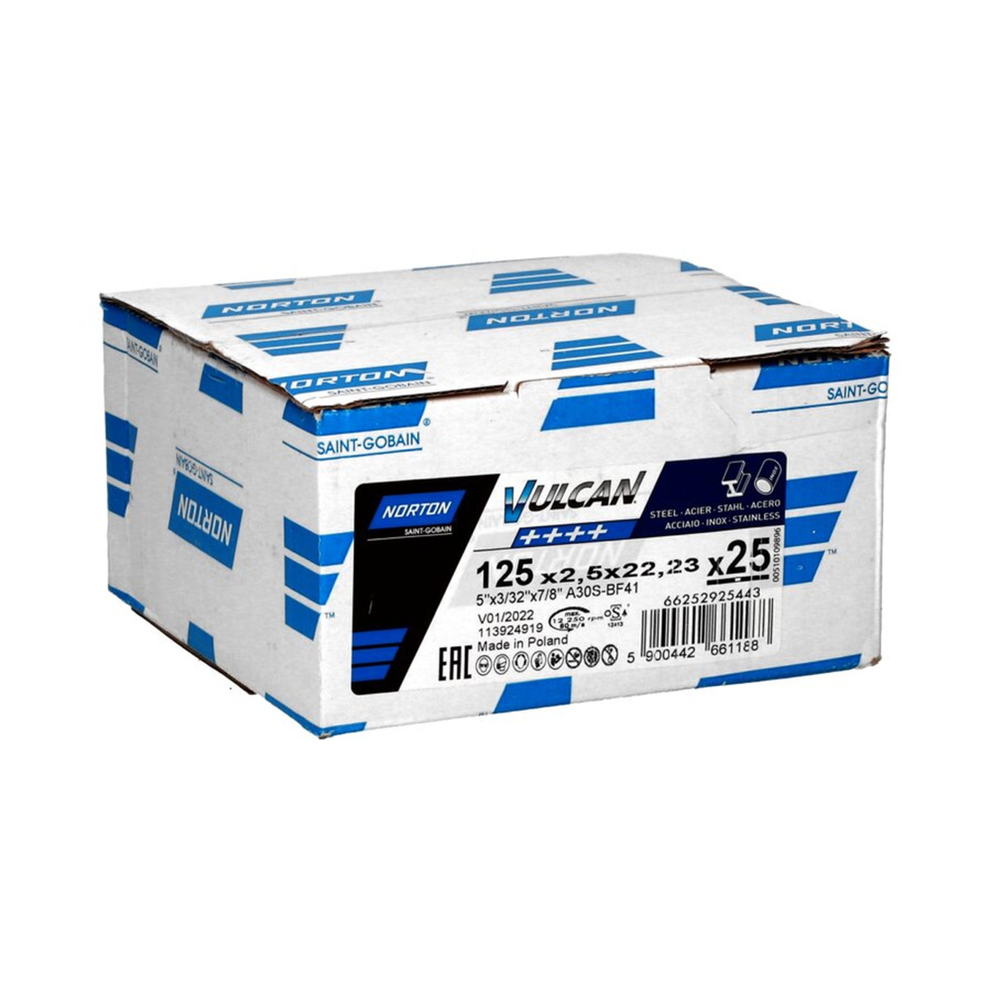 Eigenschaften: Die 25x NORTON Trennscheibe gerade 41 | 125x2,5x22,23 A 30 S Vulcan sind Teil der hochwertigen Auswahl an Schneide- und Schleifscheiben von NORTON, die speziell für Industriekunden entwickelt wurden. Mit der innovativen Vulcan