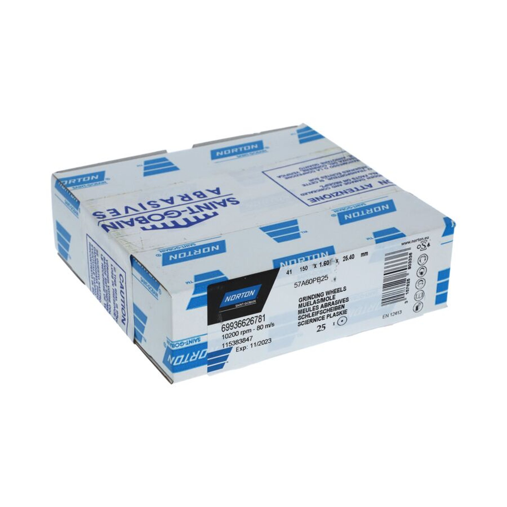 25 x Norton Trennscheibe gerade 41 | 150x1,6x25,4 | 57A 60 PB25 | Hochleistungsschnitt