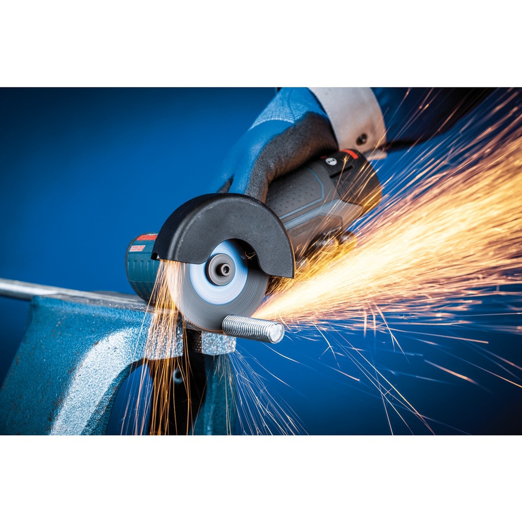 Die Scheibe hat einen Durchmesser von 76 mm und eine Dicke von 1,4 mm. Sie ist mit einem speziellen PSF DUO STEELOX-Schleifmittel ausgestattet, das für eine hohe Abtragsleistung und eine lange Standzeit sorgt. Die Kombination aus aggressivem Schleifkorn und einer harten Bindung macht die Scheibe besonders effektiv beim Schruppen von Stahl und Edelstahl.