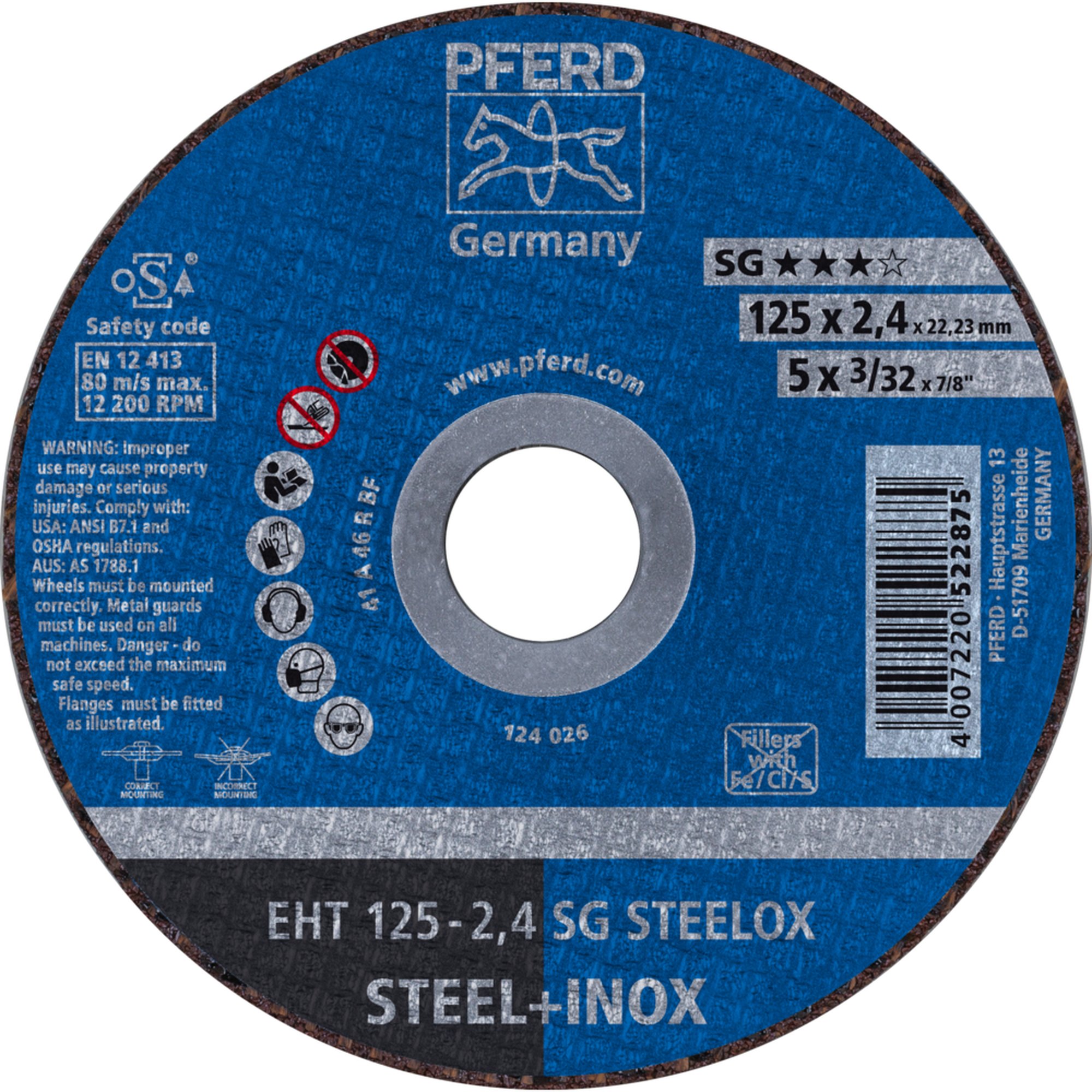 Die Trennscheibe hat einen Durchmesser von 125 mm und eine Dicke von 2,4 mm, was sie zu einer robusten und langlebigen Option macht. Sie ist mit einem speziellen Schleifmittel ausgestattet, das für eine schnelle und präzise Trennung sorgt.