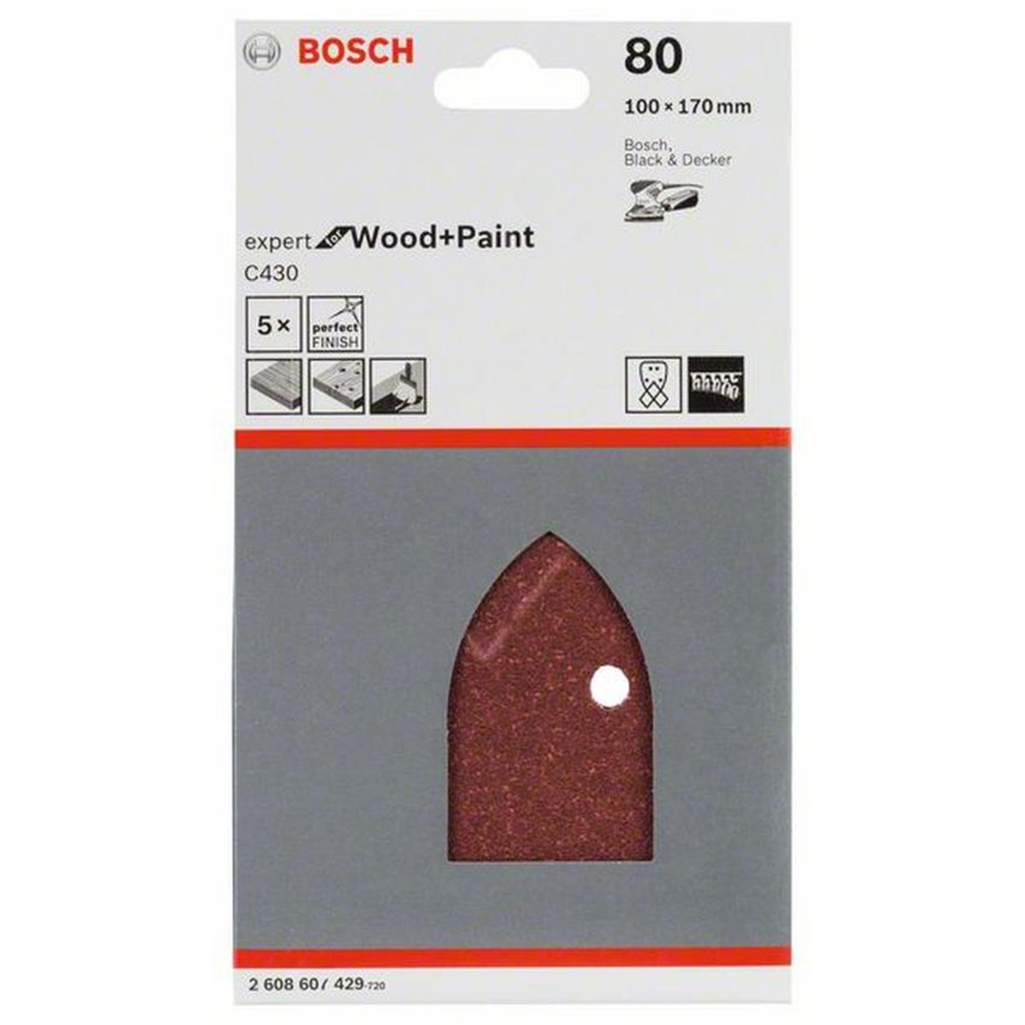 25x BOSCH Schleifblatt C430 für Holz und Farbe, 100 x 170 mm, 80, 4 Löcher, Klett
