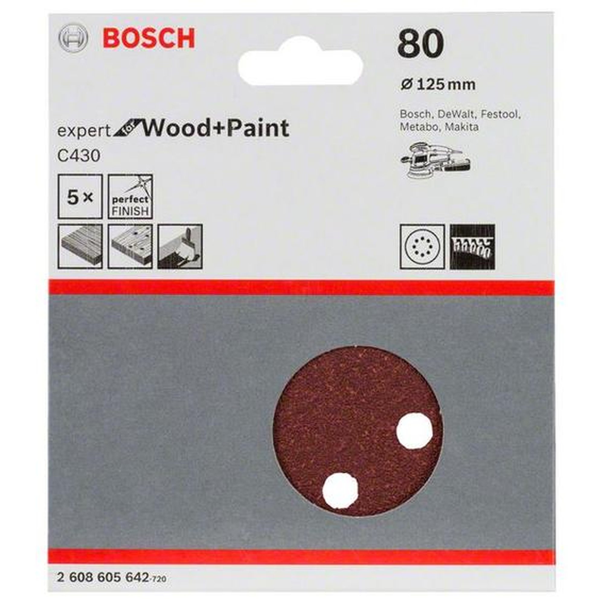 25x BOSCH Schleifblatt C430 für Holz und Farbe, 125 mm, 80, 8 Löcher, Klett