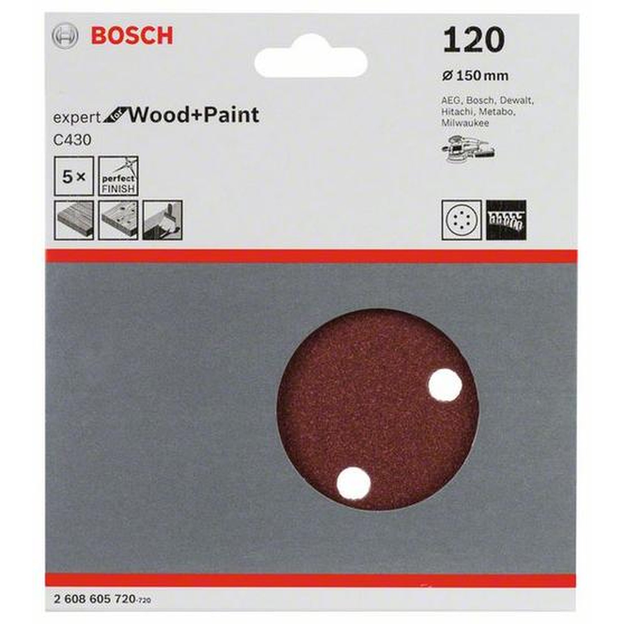 25x BOSCH Schleifblatt C430 für Holz und Farbe, 150 mm, 120, 6 Löcher, Klett