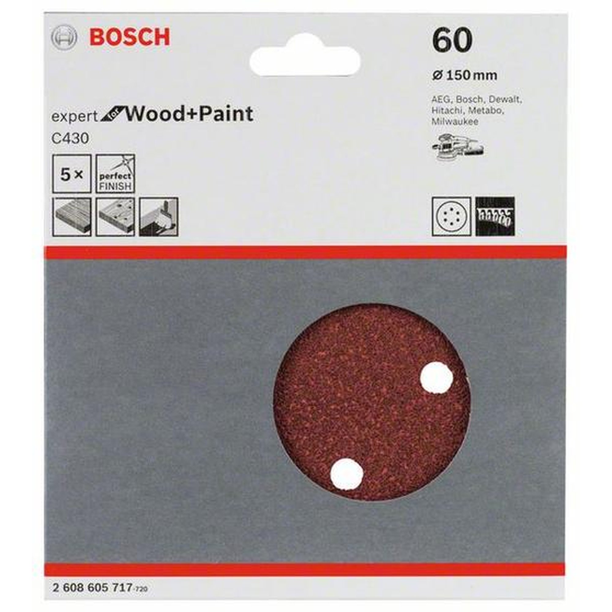 25x BOSCH Schleifblatt C430 für Holz und Farbe, 150 mm, 60, 6 Löcher, Klett