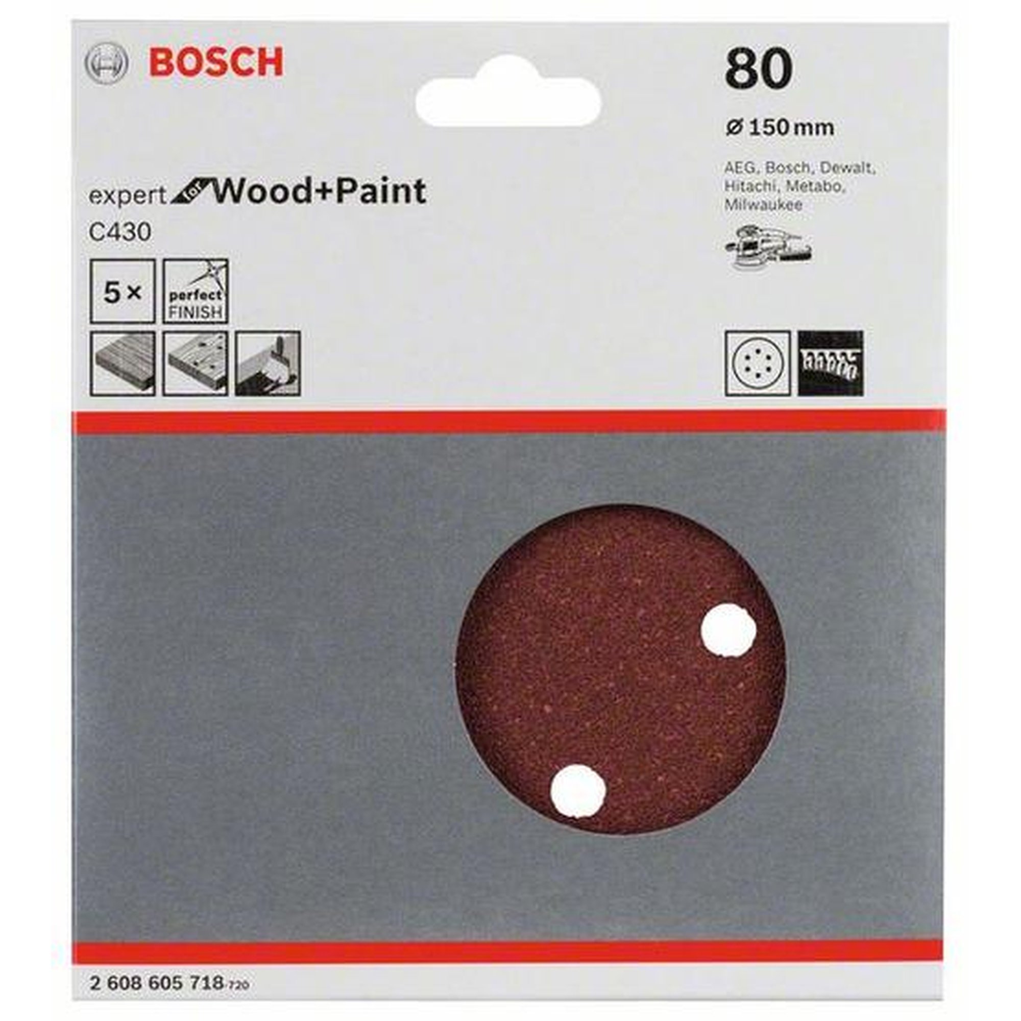 25x BOSCH Schleifblatt C430 für Holz und Farbe, 150 mm, 80, 6 Löcher, Klett
