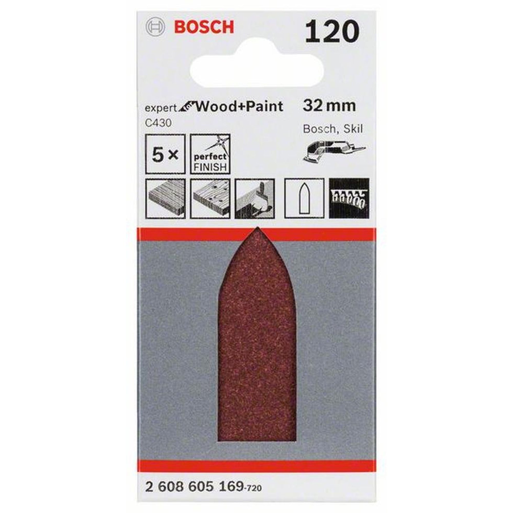 25x BOSCH Schleifblatt C430 für Holz und Farbe, 32 mm, 120, ungelocht