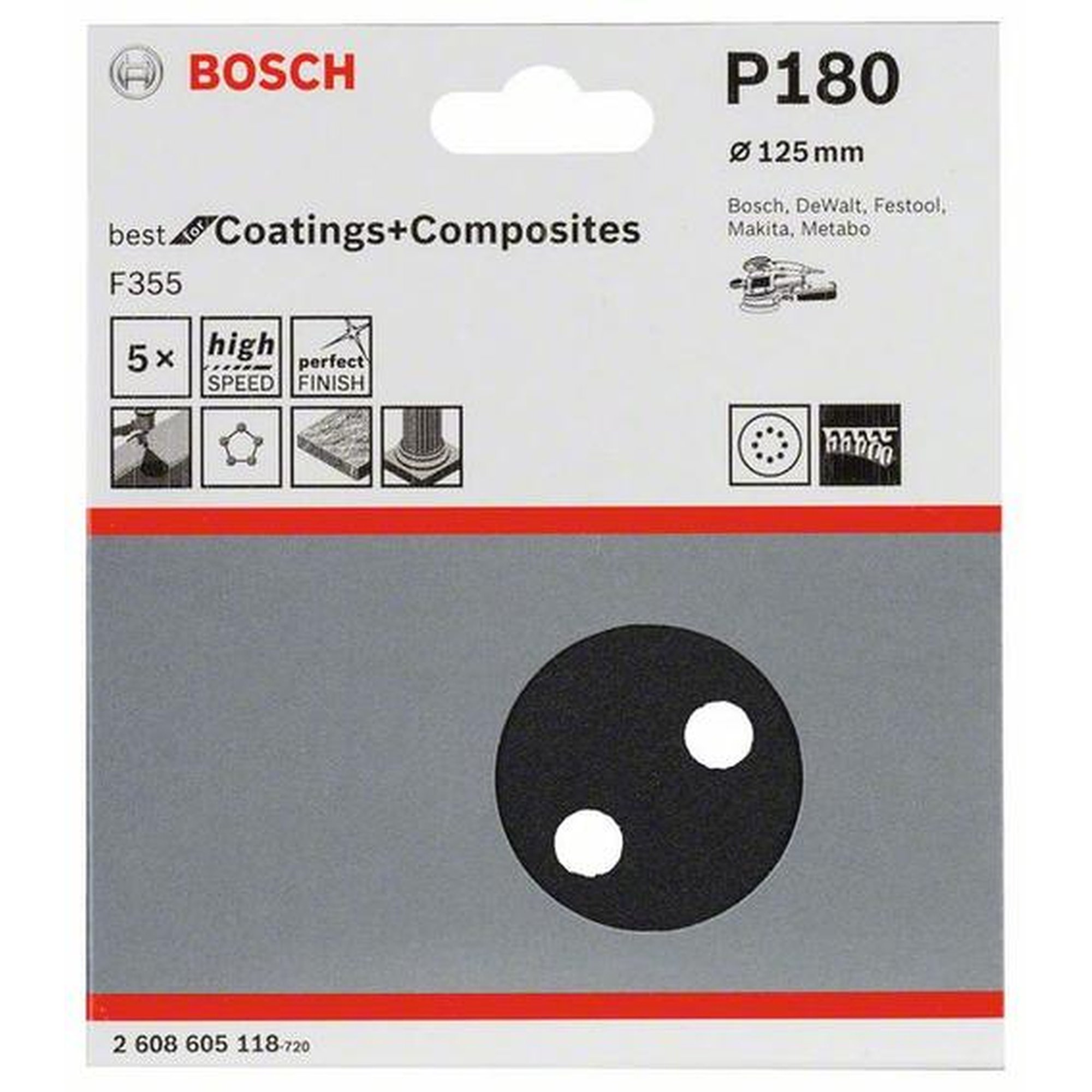 25x BOSCH Schleifblatt F355 für Lack- und Verbundmaterialflächen, 125 mm, 180, 8 Löcher, Klett