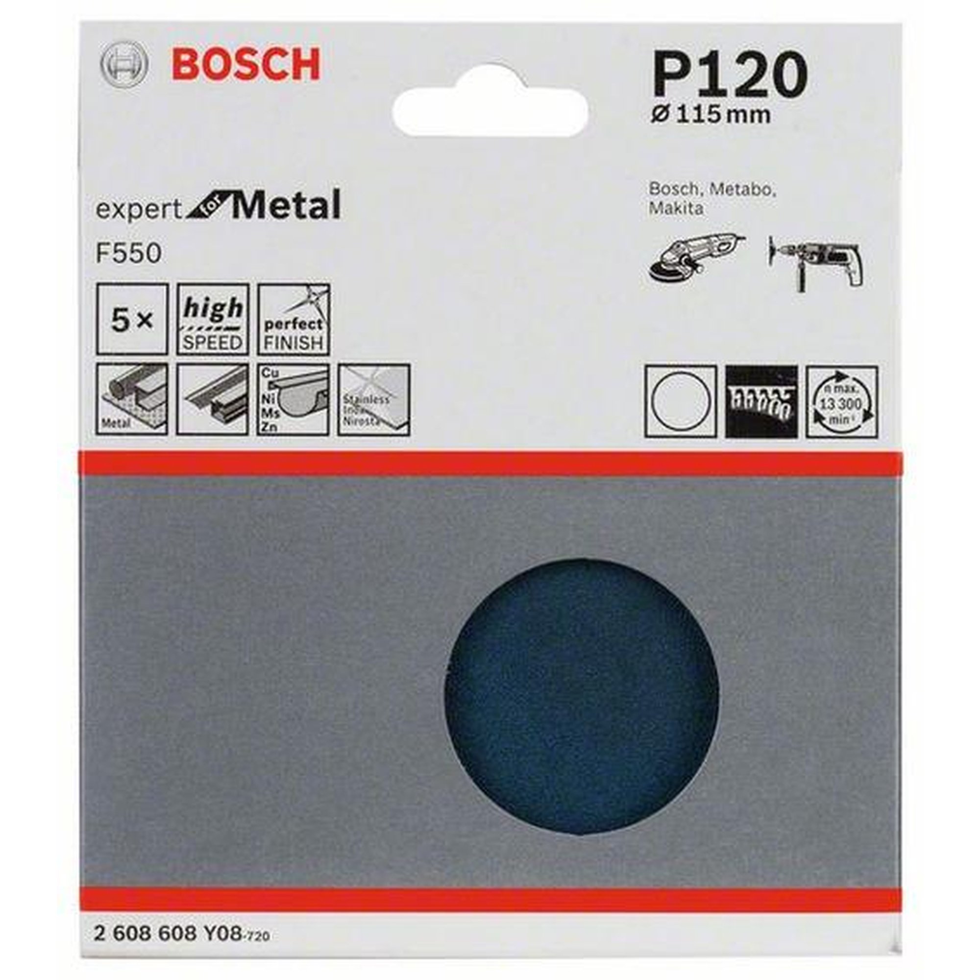 25x BOSCH Schleifblatt F550, Expert für Metall, Ø 115 mm, 120, ungelocht, Klett