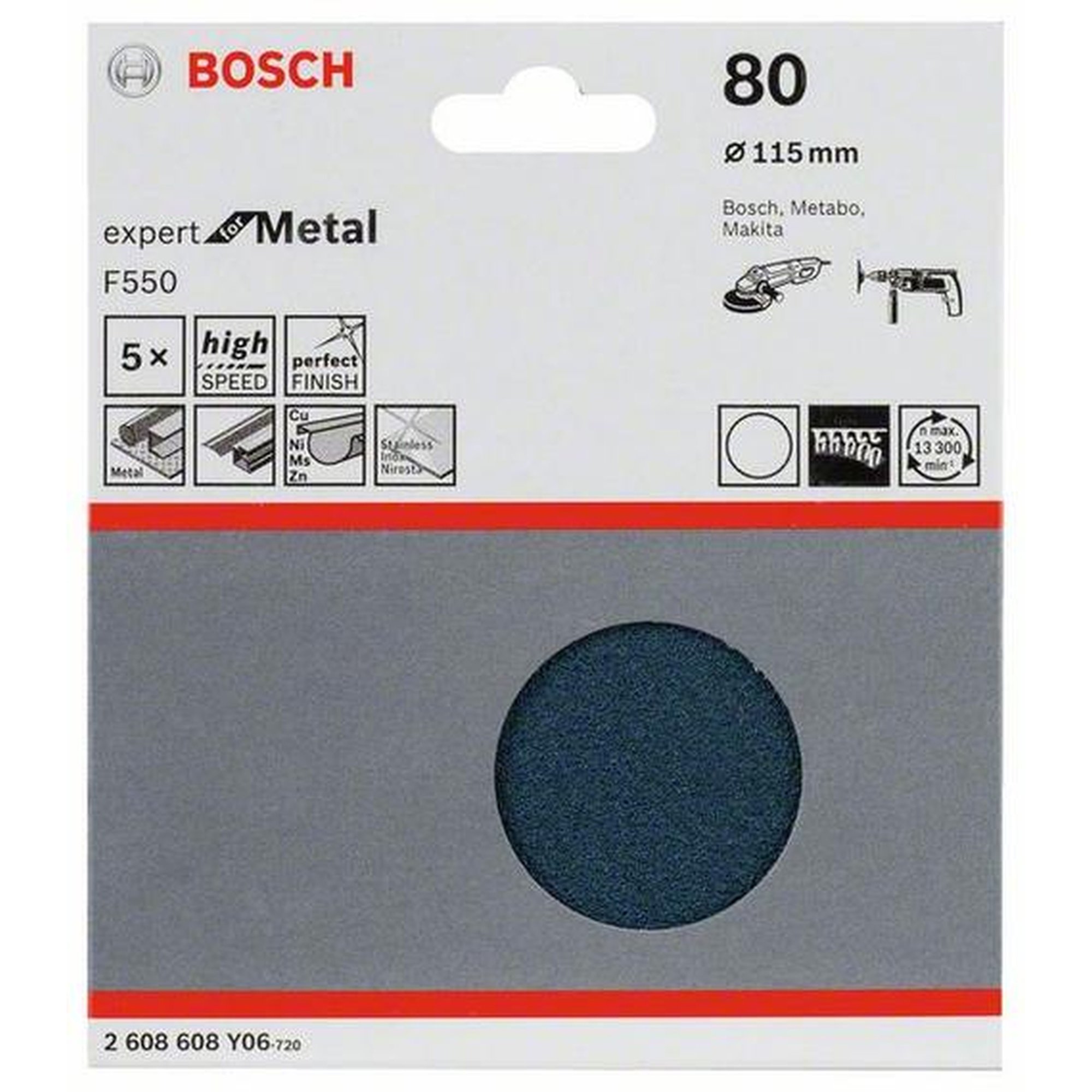 25x BOSCH Schleifblatt F550, Expert für Metall, Ø 115 mm, 80, ungelocht, Klett