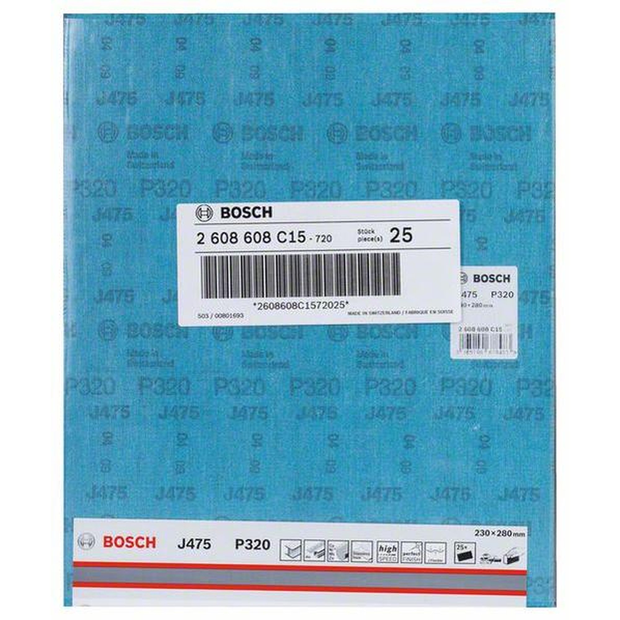 25x BOSCH Schleifblatt Papier J475, Best für Metall, 230 x 280 mm, 320, ungelocht