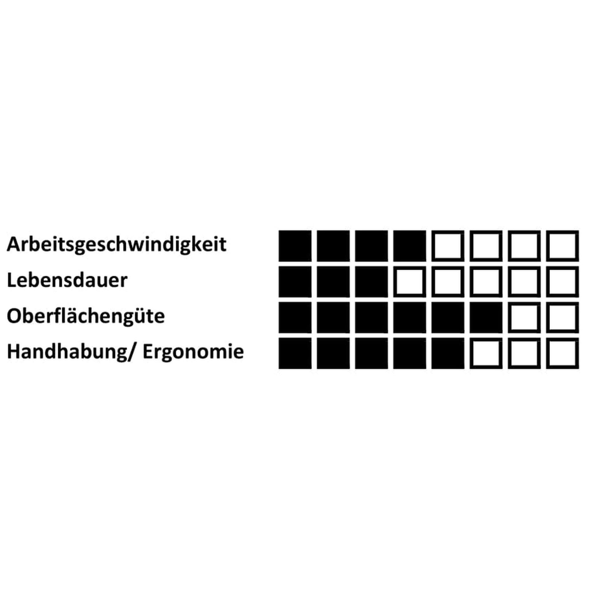 Diese Schleifblätter sind mit Korund beschichtet, was für gute Standzeiten auf Baustahl, beim Schruppschleifen und beim Grobschliff sorgt. Dadurch können Sie kosteneffizient arbeiten und müssen die Schleifblätter nicht so häufig austauschen.