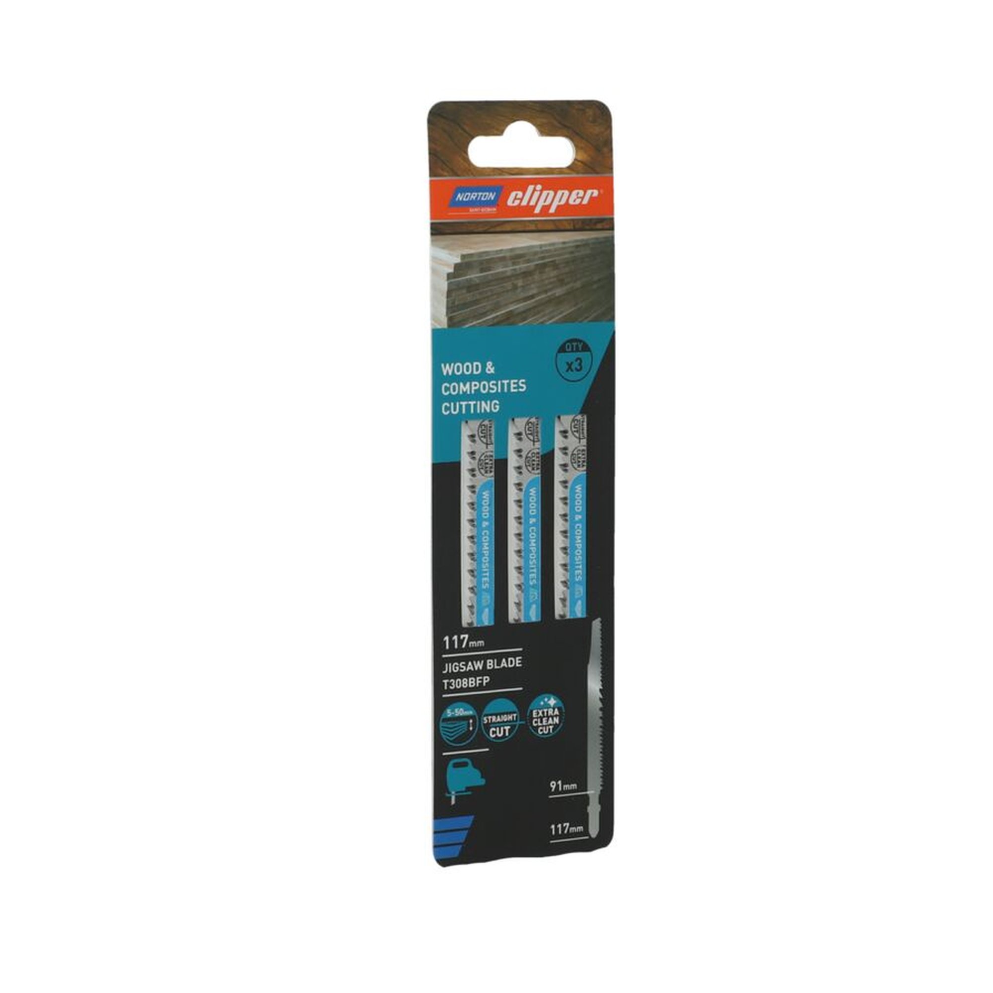 Die Norton Clipper JIGSAW BLADE BIM Stichsägeblätter sind mit einer Größe von 100x9x1.7mm konzipiert, um eine herausragende Leistung beim Schneiden von Laminaten und Furnieren zu bieten. Diese Blätter sind speziell für den Einsatz in einer Vielzahl von Materialien wie Holz, Poroton, Ziegel und Palettenholz entwickelt und ermöglichen schnelle, gratfreie und präzise Schnitte.