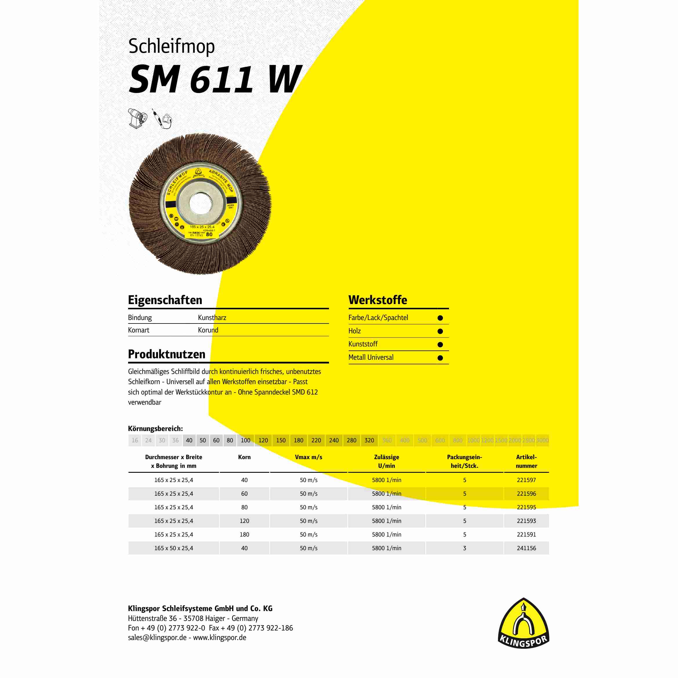 3 x Klingspor SM 611 W Schleifmopräder LS 309 X, 165 x 50 x 25,4 mm Korn 40