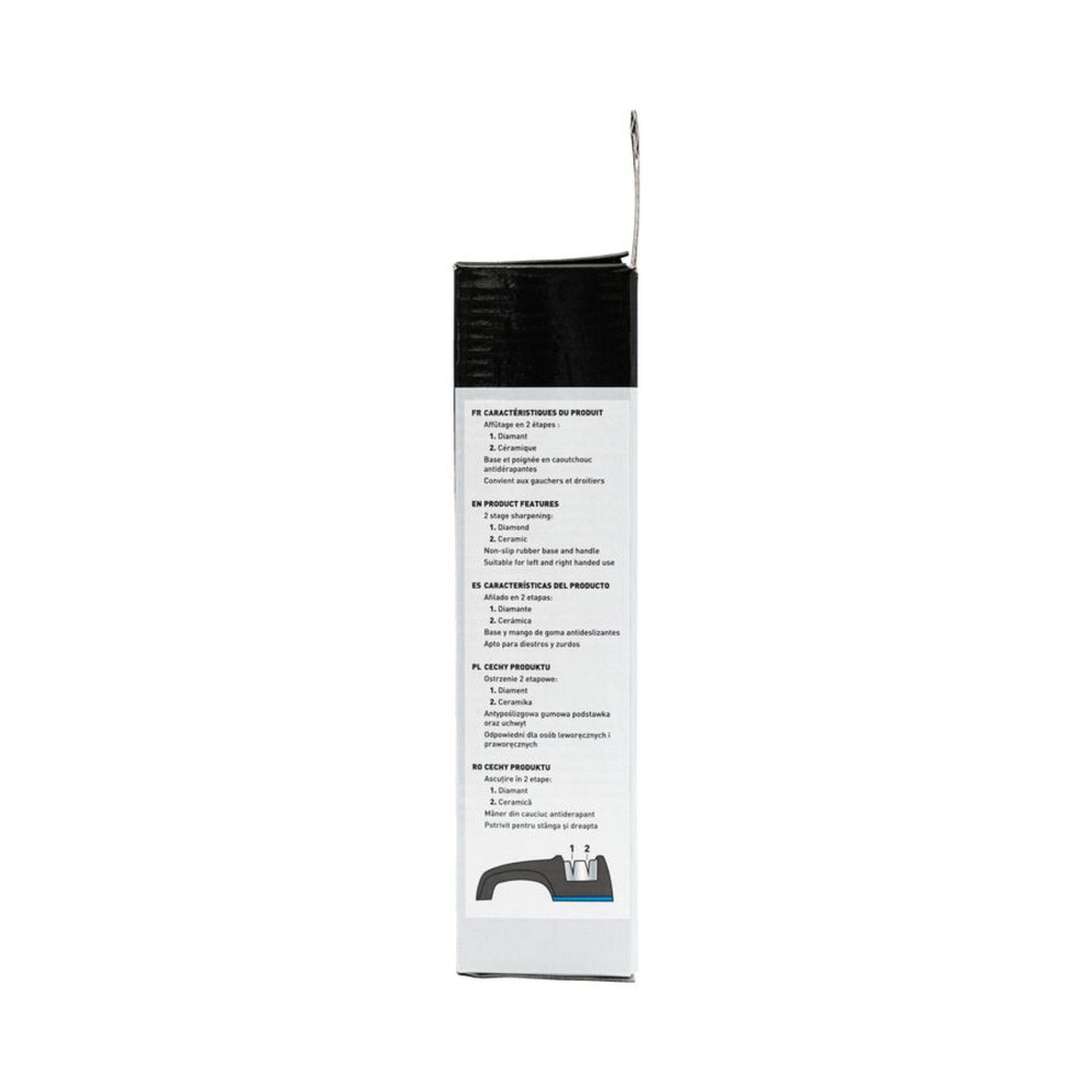 Die Konstruktion dieses Schärfers umfasst zwei unterschiedliche Seiten. Die grobe Seite dient dazu, die Klinge zu schärfen, indem sie abgestumpfte oder beschädigte Kanten effektiv glättet. Nachdem die Klinge vorbereitet ist, kann die keramische Seite verwendet werden, die der Klinge ein extrem scharfes Finish verleiht. Diese doppelte Funktionalität sorgt dafür, dass die Messer nicht nur scharf, sondern auch langlebig bleiben.