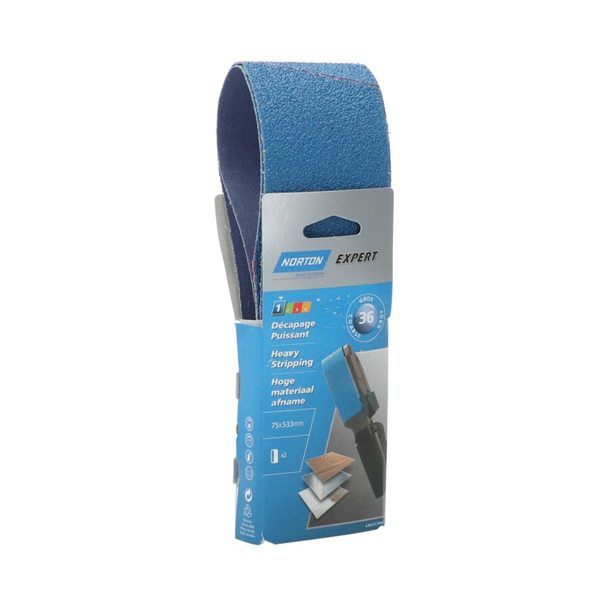 3 x Norton EXPERT Schleifbänder 75x533mm K36 für Hand-Bandschleifer, 2 Stück