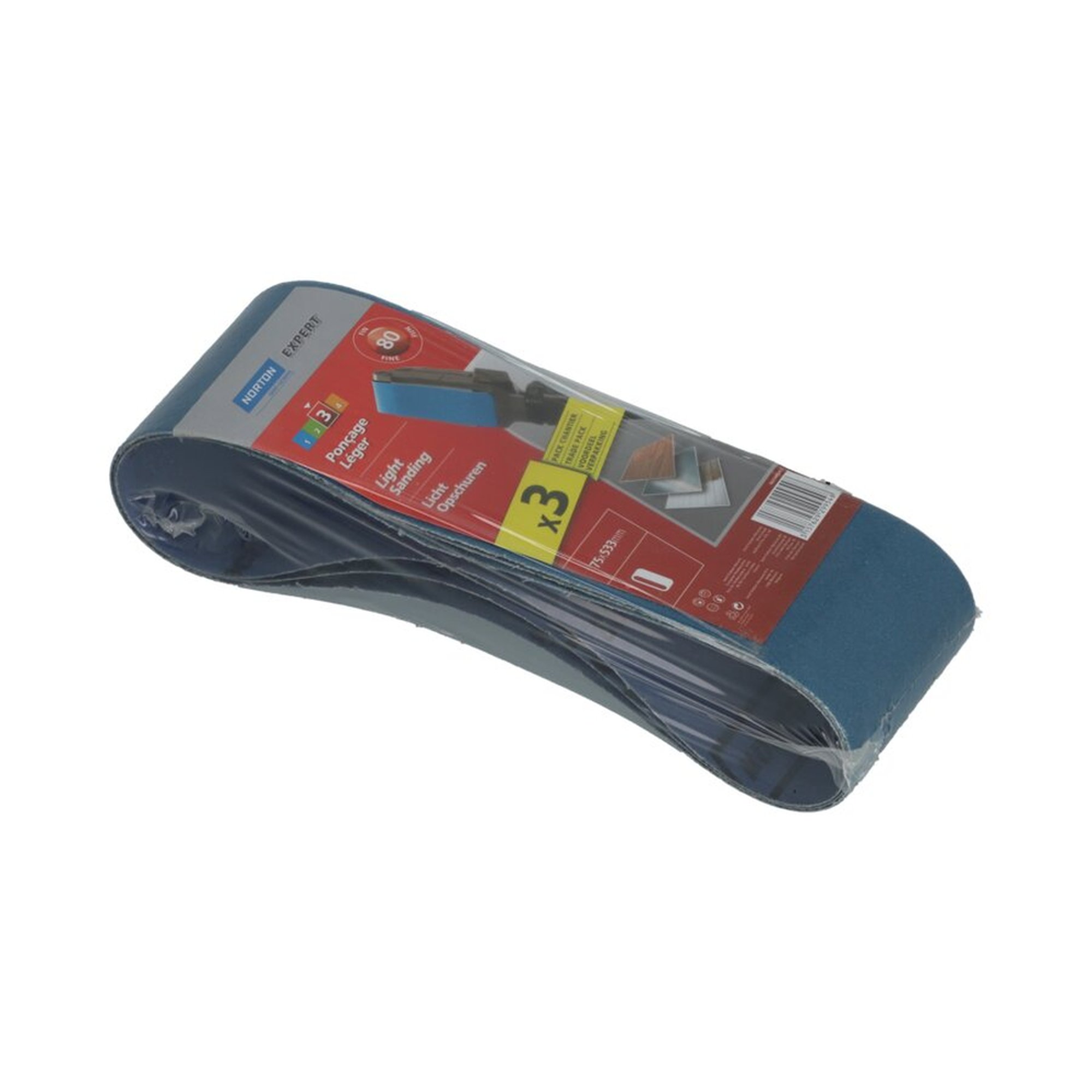 3 x Norton EXPERT Schleifbänder 75x533mm K80 für Hand-Bandschleifer