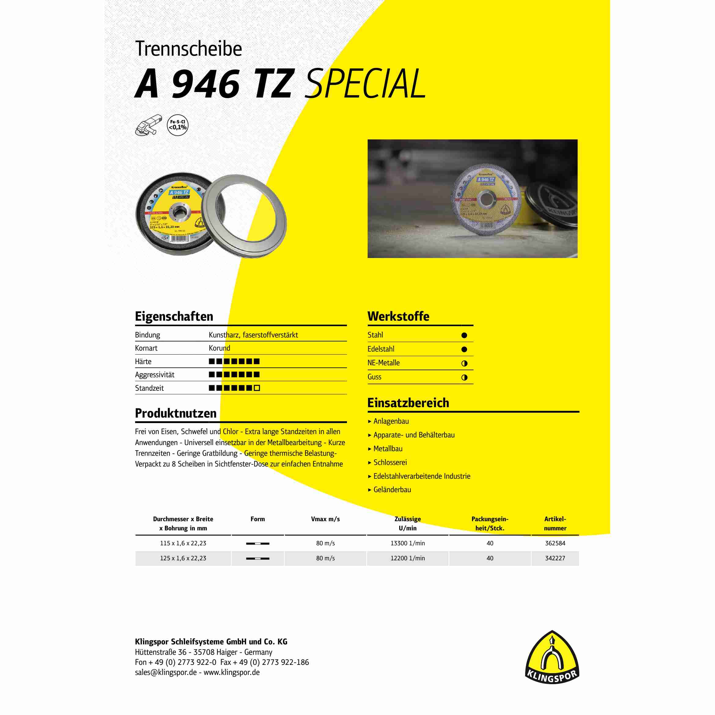40 x Klingspor A 946 TZ Trennscheiben 5 Dosen a 8 Stück | 115 x 1,6 x 22,23 mm gerade