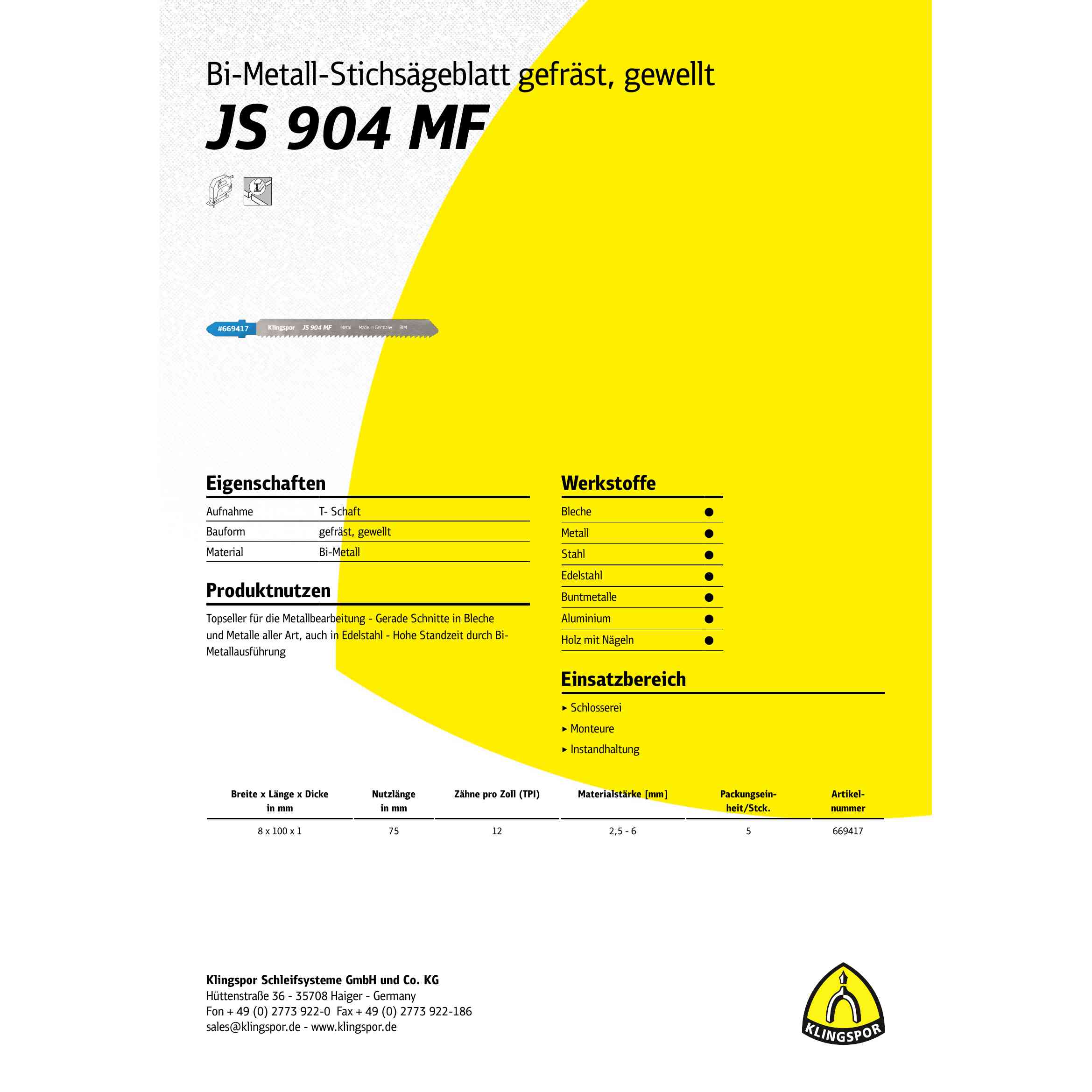 5 x Klingspor JS 904 MF Stichsägeblätter 100 x 8 x 1 mm Nutzlänge 75Bi-Metall gefräst, gewellt, 12 Zähne pro Zoll