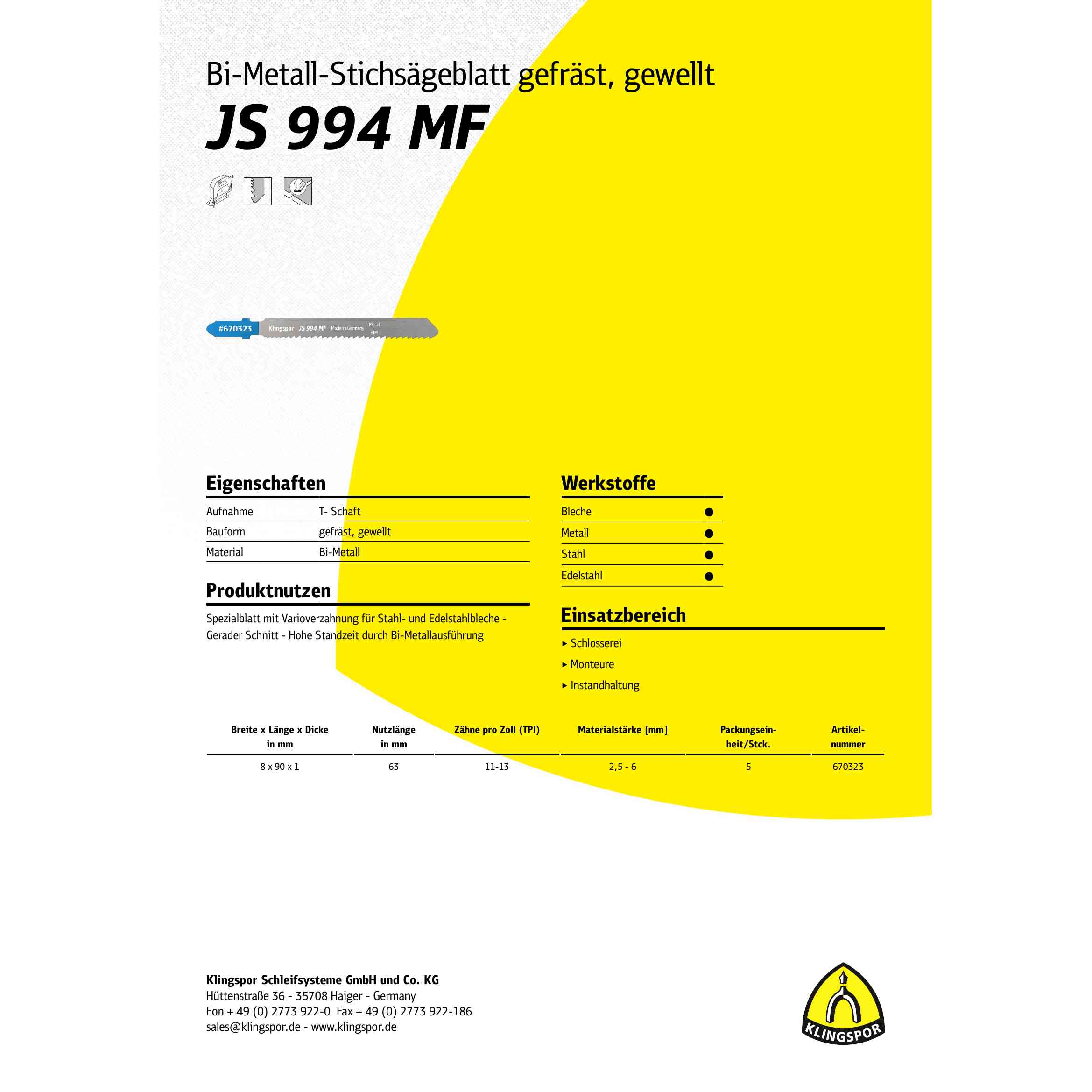 5 x Klingspor JS 994 MF Stichsägeblätter 90 x 8 x 1 mm Nutzlänge 63Bi-Metall gefräst, gewellt, 11-13 Zähne pro Zoll