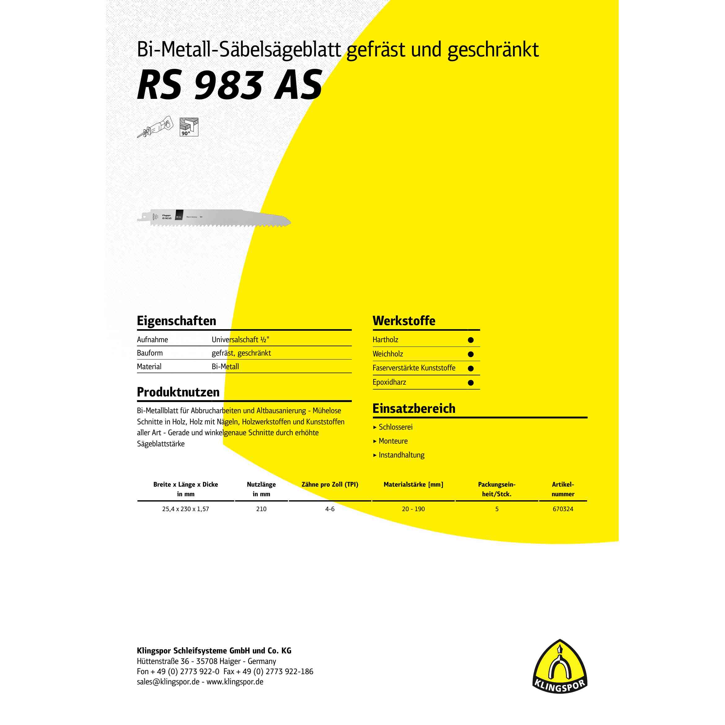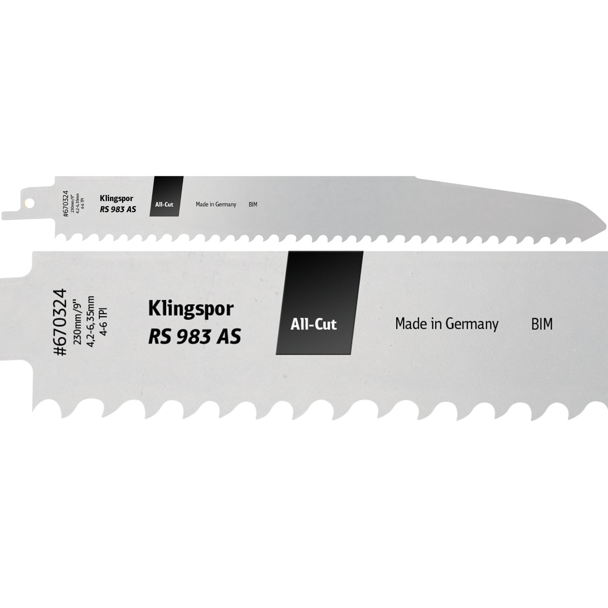 5 x Klingspor RS 983 AS Säbelsägeblätter 230 x 25,4 x 1,57 mm Nutzlänge 210Bi-Metall gefräst, geschränkt, 4-6 Zähne pro Zoll