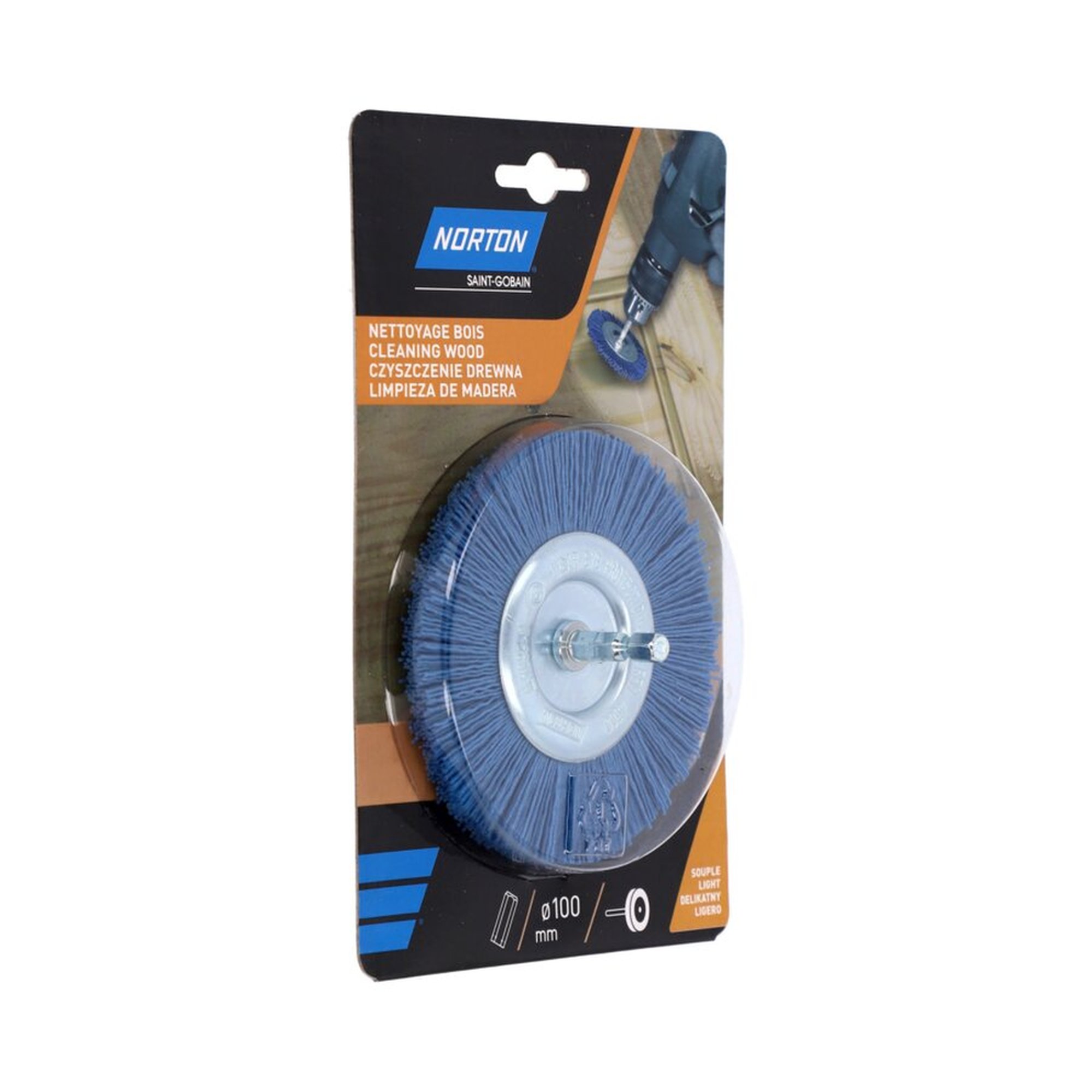 Die Norton Rundbürste mit blauem Nylon ist speziell für die Reinigung von Holzoberflächen entwickelt worden, einschließlich HOLZ UND SPANPLATTE. Sie eignet sich hervorragend zur Entfernung von abblätternder Farbe, alten Lackschichten oder hartnäckigen Kleberesten. Der feine blaue Nylondraht dieser Rundbürste ist deutlich weniger grob als traditionelle Drahtbürsten, was eine weniger aggressive Nutzung ermöglicht.