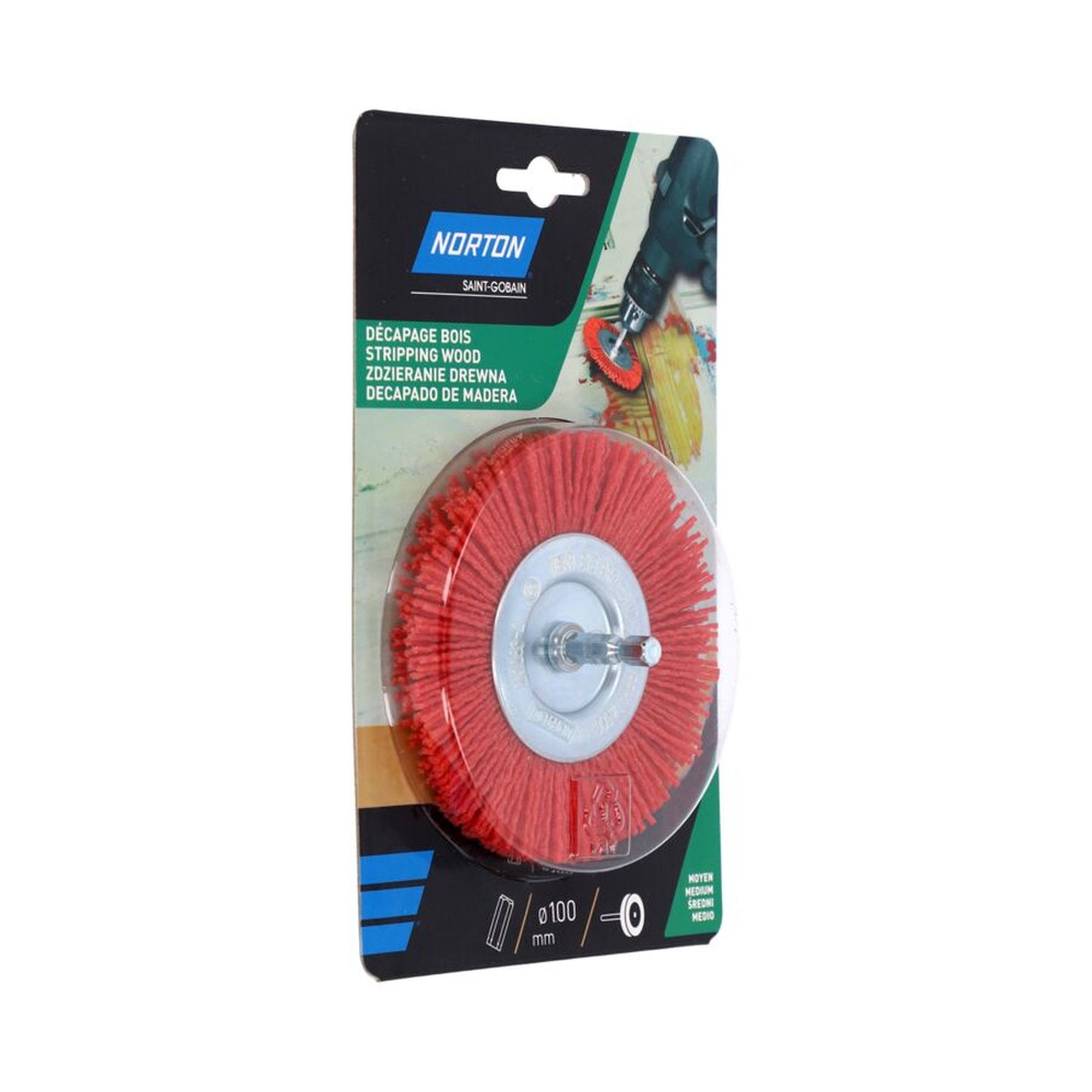 Die Norton Rundbürsten sind ein unverzichtbares Werkzeug für effektive Reinigungs- und Vorbereitungsarbeiten auf harten Holzoberflächen. Ausgestattet mit roten Nylonbürsten, die aufgrund ihrer dickeren und starreren Drahtart signifikant gröber und aggressiver als herkömmliche blaue Bürsten sind, bieten diese Werkzeuge eine herausragende Leistung beim Entfernen von Farben, Lacken und alten Klebstoffresten.