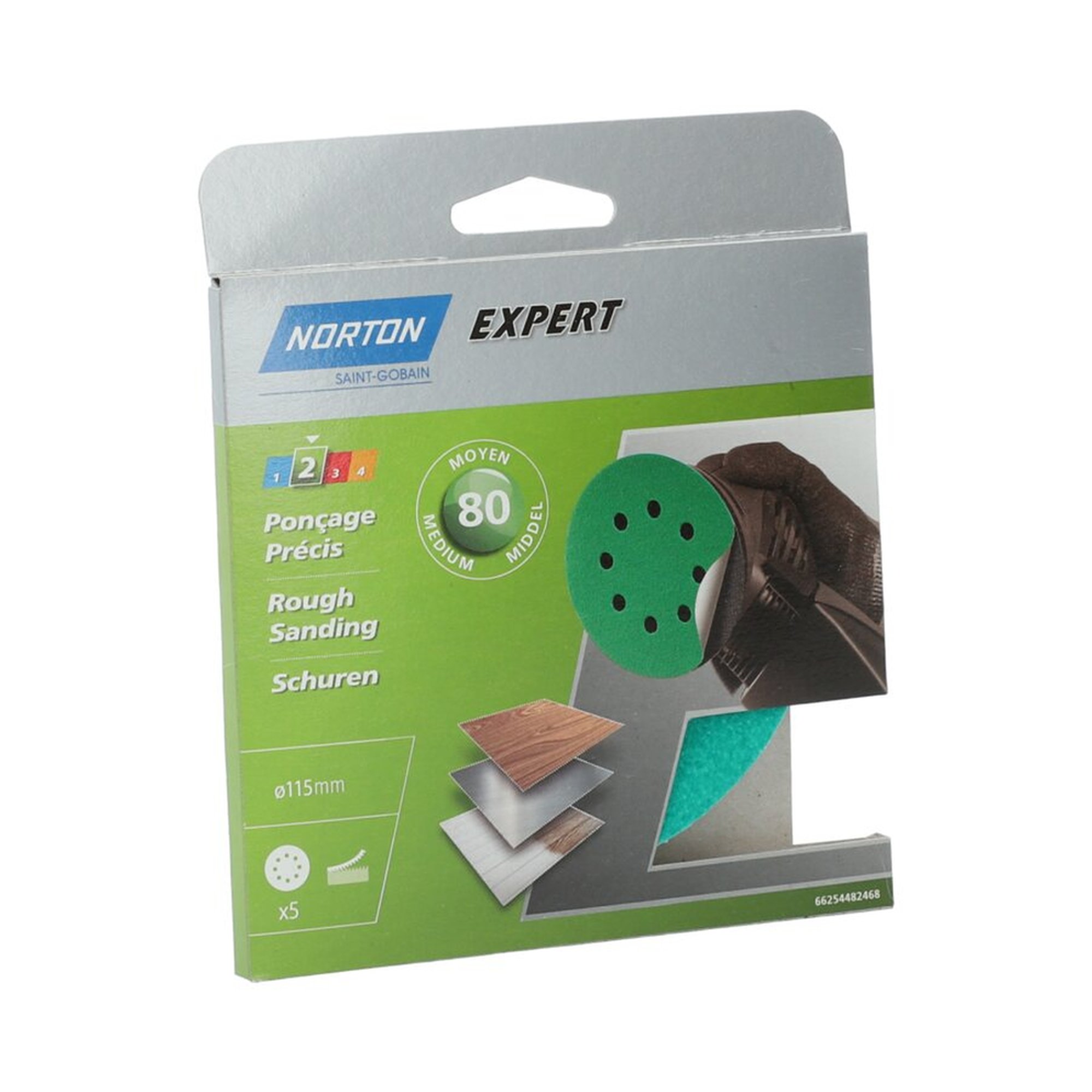 5 x Norton EXPERT Scheiben Klett 115 K80 8-Loch für effizientes Schleifen