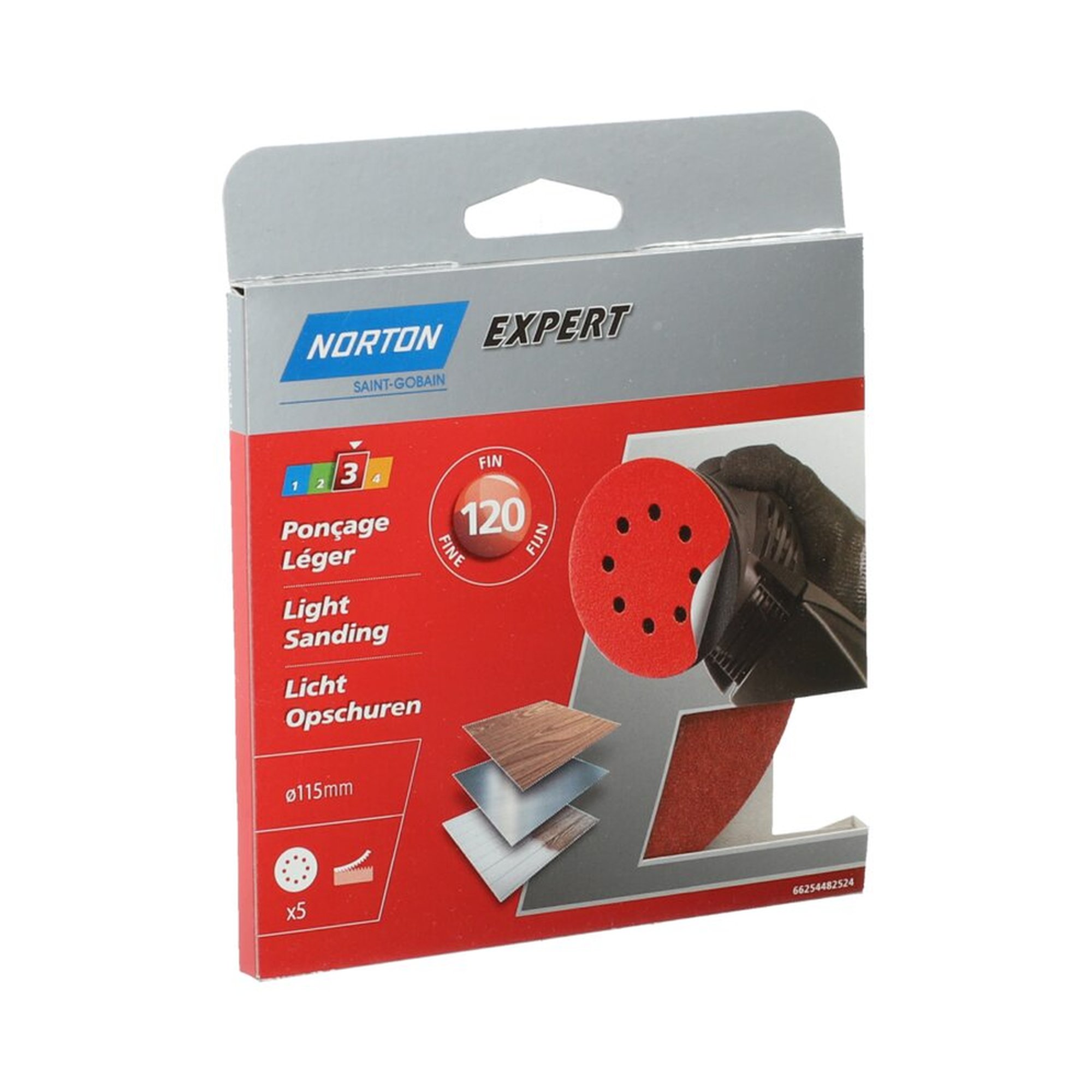 5 x Norton EXPERT Scheiben Klett 115mm K120 8-Loch für effizientes Schleifen
