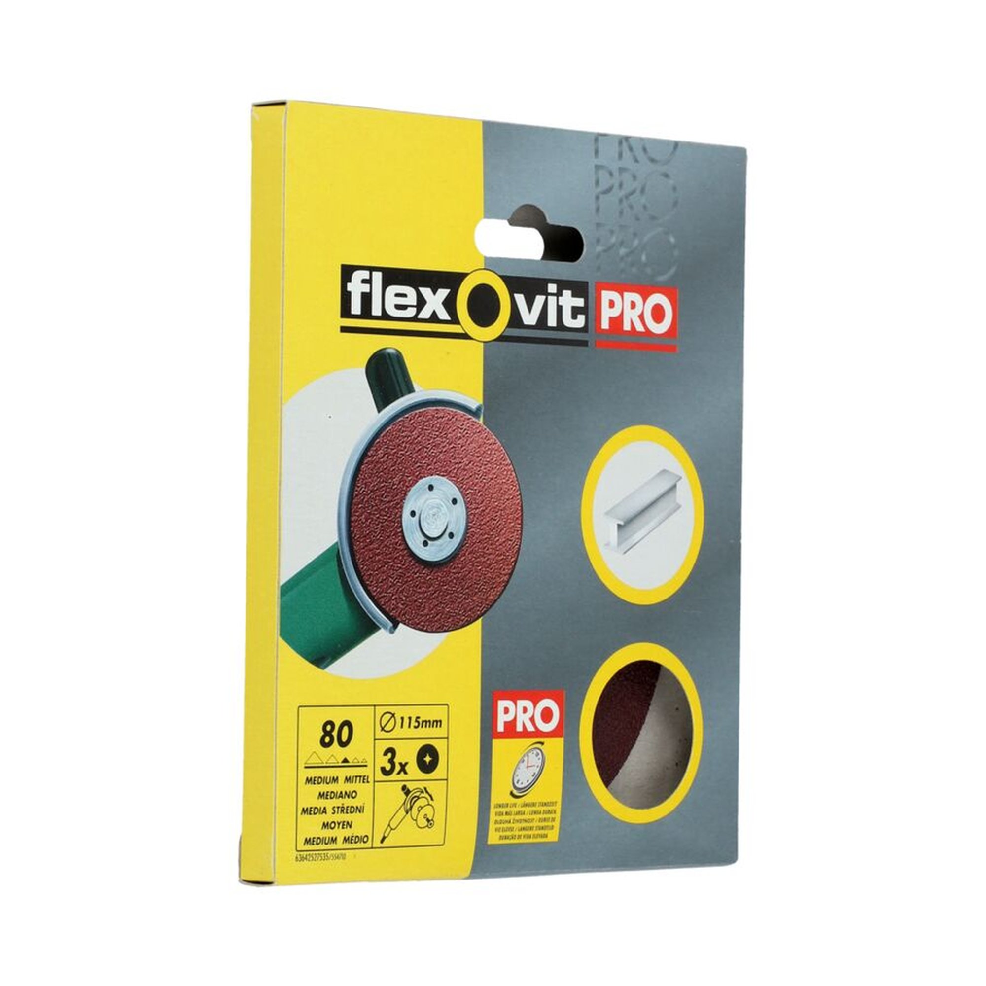 3er-Pack Fiberscheiben von Flexovit, 115x22 mm, Körnung 80, ideal für effizientes Schleifen von Stahl mit Winkelschleifern.,